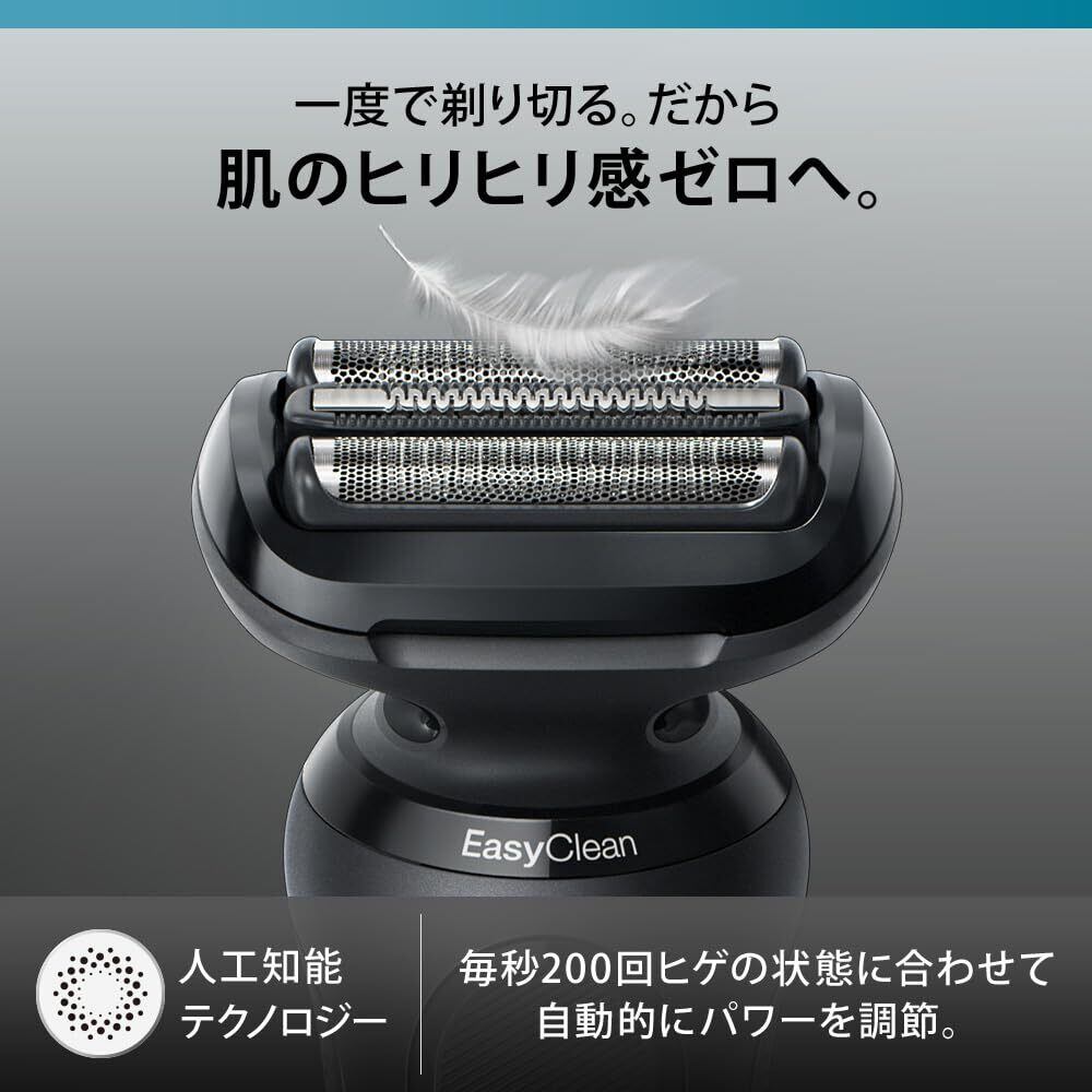 ブラウン シリーズ5は3連密着ブレードを搭載したシェーバーで、肌の凹凸にシェーバーヘッドがしっかり密着した状態で髭剃りすることで、簡単に深剃りを実現。■3連密着ブレード:3つの刃がそれぞれ独立して浮き沈みすることで、肌にしっかり密着。■人工知能テクノロジー:髭の濃さを読み取り毎秒13回自動でパワーを調節し、ヒゲの濃い箇所でもパワーを落とさず最適なシェービングが可能に。■クイック洗浄システム:ヘッドを外さずに簡単に清潔洗浄■アルコール洗浄システム:ブラウンだけのアルコール洗浄で皮脂汚れもしっかり落とし、毎日新品同様の剃り味をキープ。■キワゾリトリマー:キワゾリトリマーアタッチメントにより、長い髭やもみあげも楽に髭剃り可能に。■100%防水設計:100%防水設計でお風呂剃り可能な電気シェーバー。シェービングフォームやシェービングジェルの使用も可能。■ディープキャッチ網刃:900パターンの網目をもったディープキャッチ網刃により様々な向きに生えるヒゲを根元からカット。■フル充電で約50分のコードレスシェービング 5分の急速充電で1回のシェービングが可能■3連密着ブレード:3つの刃がそれぞれ独立して浮き沈みすることで、肌にしっかり密着。