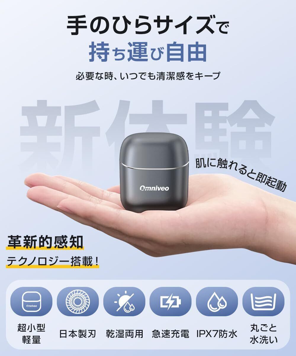 【超軽量&ポケットサイズ】いつでもどこでも快適シェービング。この ひげそり 電動シェーバー は、手のひらに収まる超 小型 設計で、重さわずか約83g。ポケットやバッグにもすっきり収納できるので、通勤・旅行・出張・車内など、シーンを問わずサッと取り出して使用可能。 ひげそり 電動 をお探しの方や、携帯性を重視する男性におすすめの 電気シェーバー メンズ モデルです。常に清潔感をキープしたい方に最適な シェーバー メンズ です。