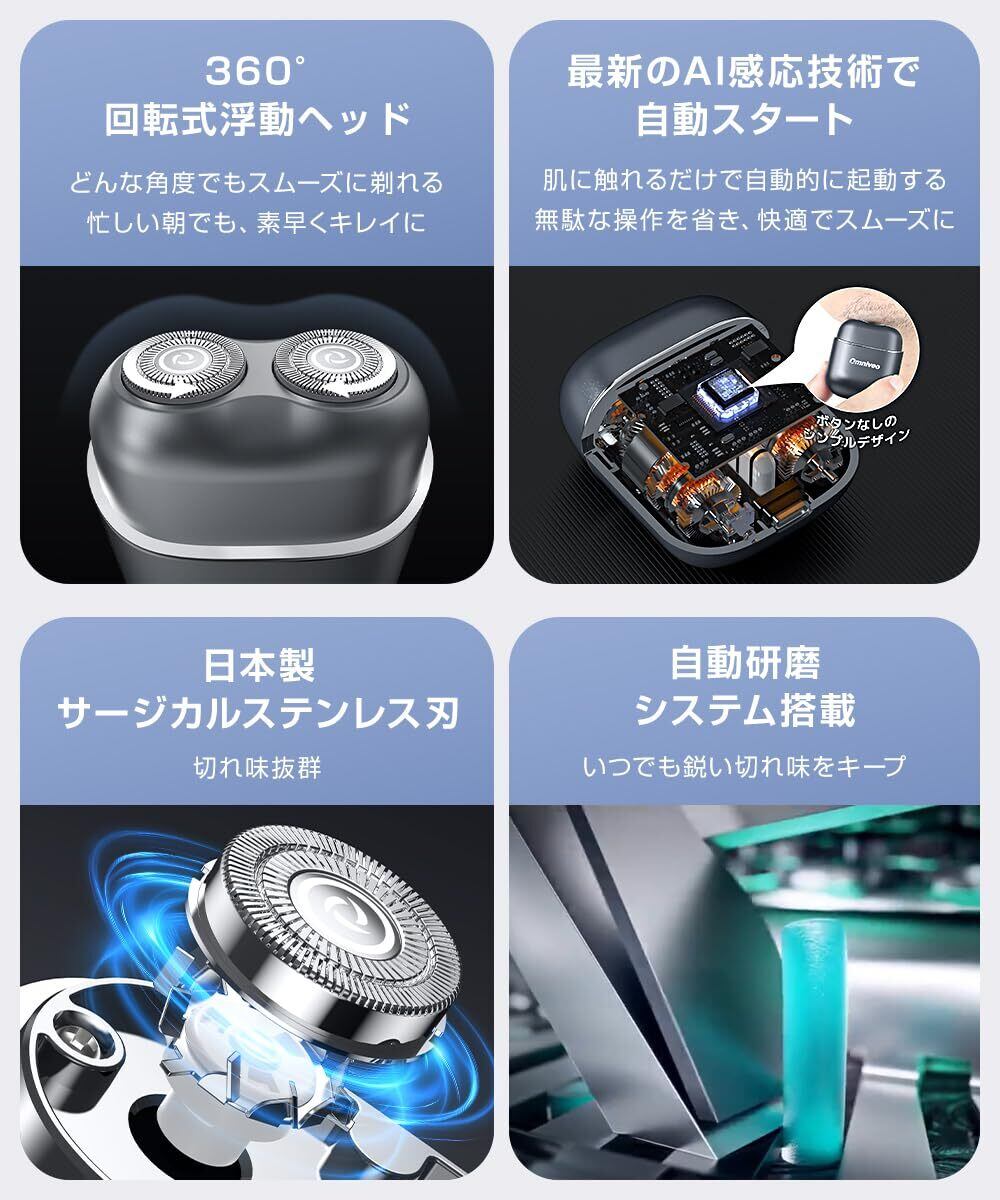 ひげそり 電動シェーバー 【2025新・超軽量小型・360°回転式深剃り】 髭剃り 電動 Type-C充電式 急速充電 低騒音 シェーバー メンズ IPX7防水 乾湿両用 自動研磨機能 電気シェーバー AI感応技術 自動スタート 男性 父の日 旅行 出張 車内常備 プレゼント ギフト