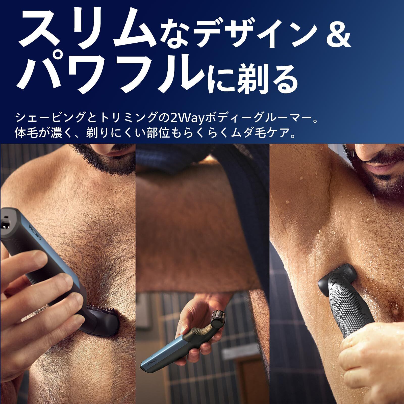 フィリップス ボディーグルーマー 3000シリーズ(BG3027/03)はシェービングとトリミングの2Wayボディーグルーマー一台で、ワキ、腕、胸、腹、脚、足、スネ、VIOのデリケートゾーンなど簡単に全身のムダ毛ケアを実現。