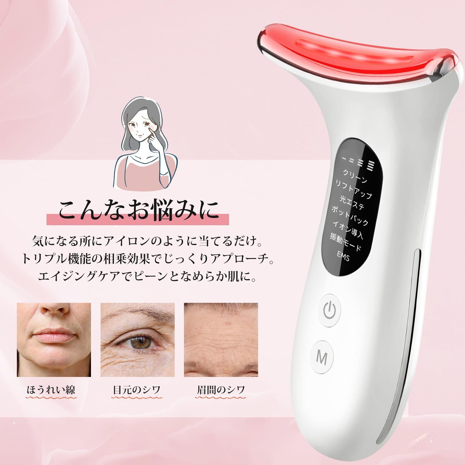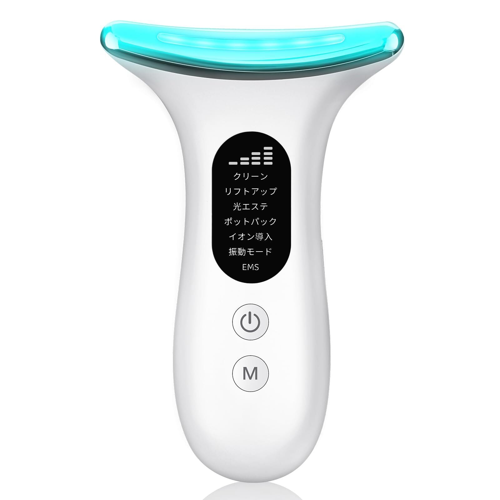 美顔器 ems 美顔器 リフトアップ【1台多役+4段階レベル調整でき+ 7色LED光+日本語LEDスクリーン】恒温機能 美顔ローラー 口元 首元 多機能美顔器 フェイスケア ボディケア カッサ 肌ケア スキンケア USB充電式 充電ケーブル付き 超軽量 高周波 持ち運び便利 誕生日・母の日・記念日 プレゼント 男女兼用 旅行グッズ 自宅用 日本語取扱説明書 ホワイト