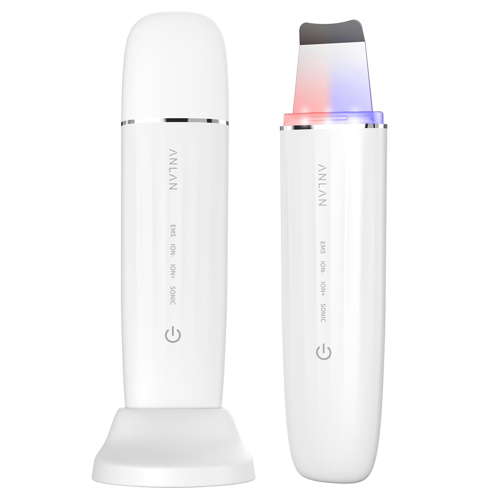 【美人百花毛穴ケア美顔器部門NO1】ANLAN ロイヤル ウォーターピーリング IPX7完全防水 美顔器 1台6役 超音波ピーリング emsリフトケア イオン美顔器 赤青光エステ 毛穴ケア 男女兼用 Type-C充電スタンド 出張 旅行 自宅用 誕生日プレゼント 母の日 (ホワイト)