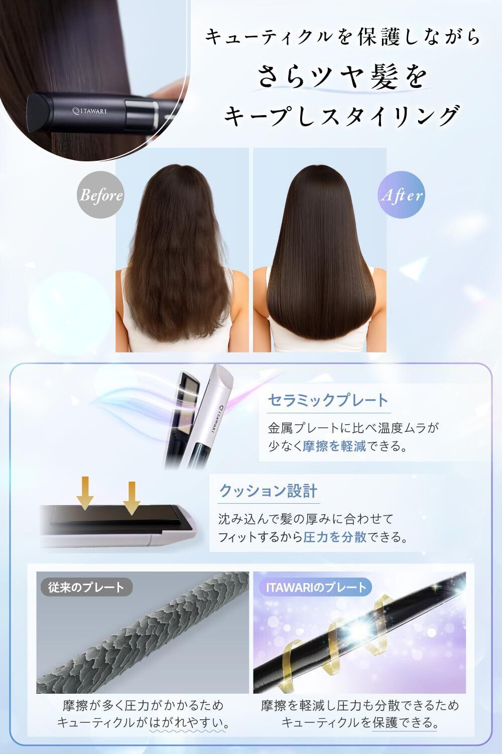【表参道 美容サロン推奨】 日本メーカー公式 コードレスヘアアイロン [キューティクル保護プレート採用 髪に艶と潤いを] 充電式持ち運びヘアアイロン 3段階温度調整 165℃〜205℃ 耐熱ケース付き (マットブラック)