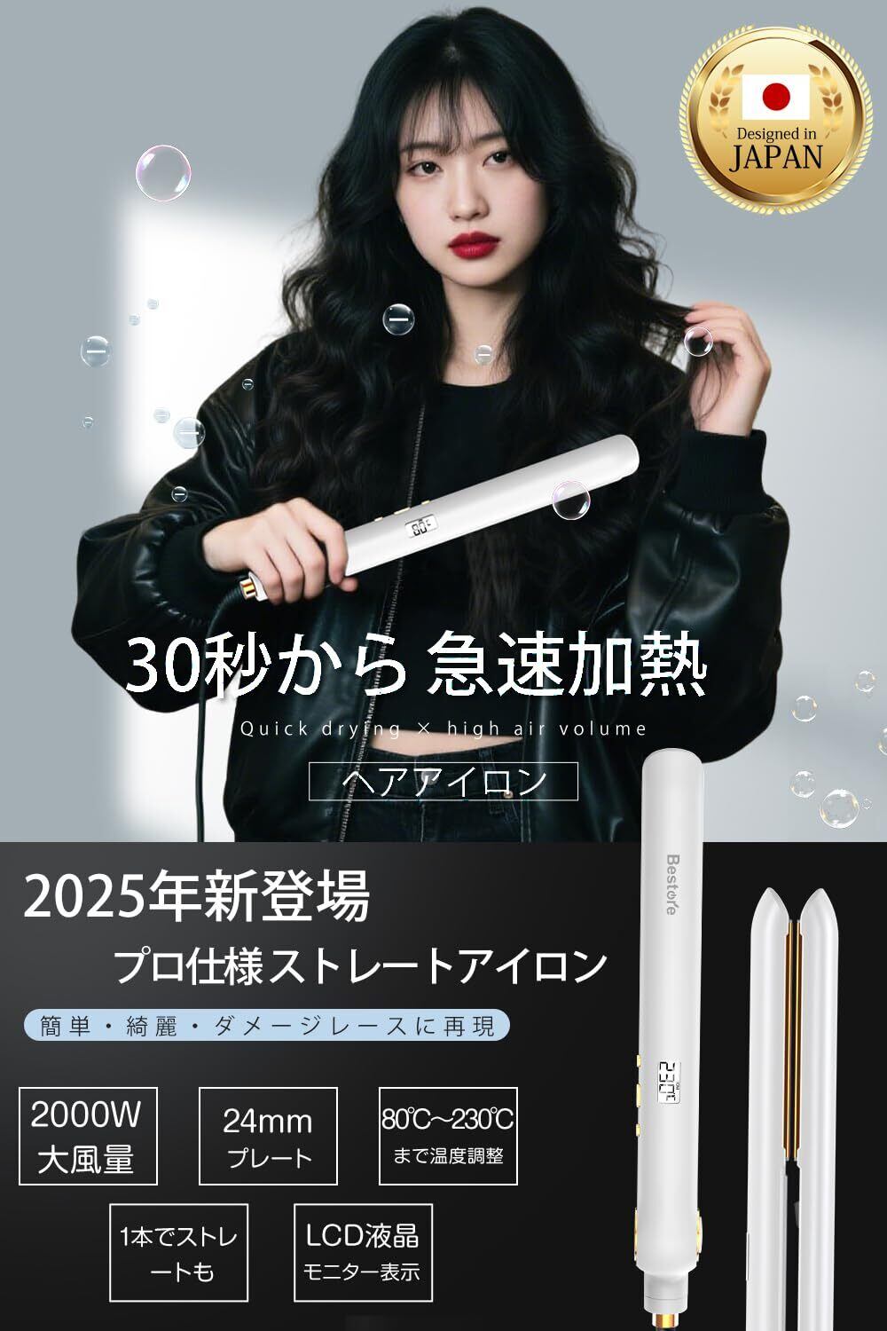 \【特価商品】【2025新登場・1億マイナスイオン噴出】 ヘアアイロン ストレート 2WAY ヘアストレートナー 80℃~230℃温度調整 LCD液晶モニター表示 360度回転コード ワンタッチロック 24mm ストレートアイロン 軽量 コンパクト ヘアスタイリング プロ仕様 初心者向け 男女兼用 (ホワイト)/