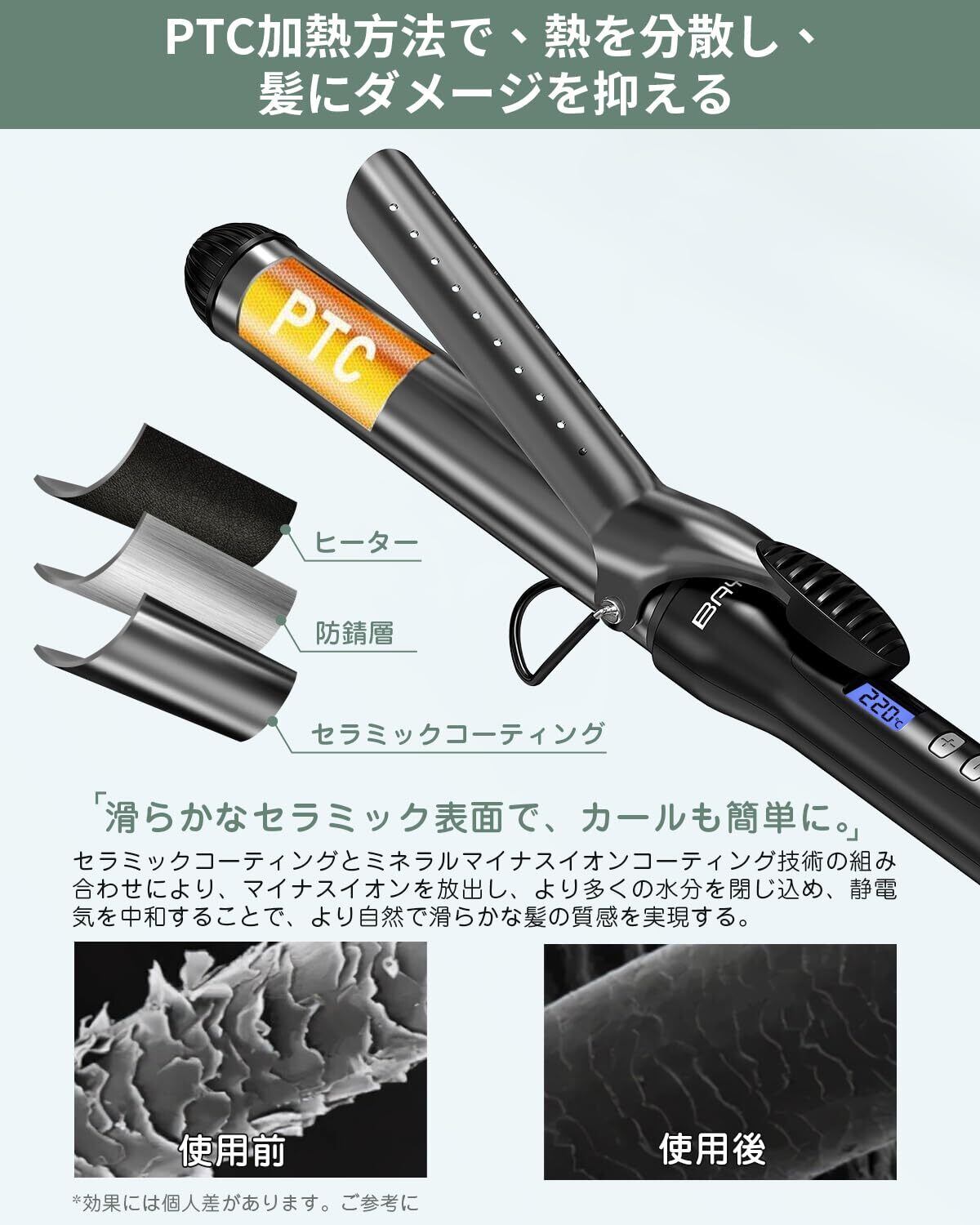 BAYATA ヘアアイロン カールアイロン コテ 32mm 巻き髪 カーラー 25段階温度調整 MAX220℃ デジタル温度表示 自動電源OFF 海外対応 PSE認証済み 日本語説明書付き