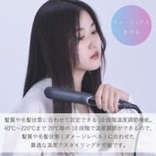 このアイロンは、一日中髪をしっかりケアできるマイナスイオン機能付き。静電気を防ぎ、潤いを与えることで、しなやかで美しいツヤ感を実現します。髪へのダメージを最小限にする設計だから、安心して毎日お使いいただけます。