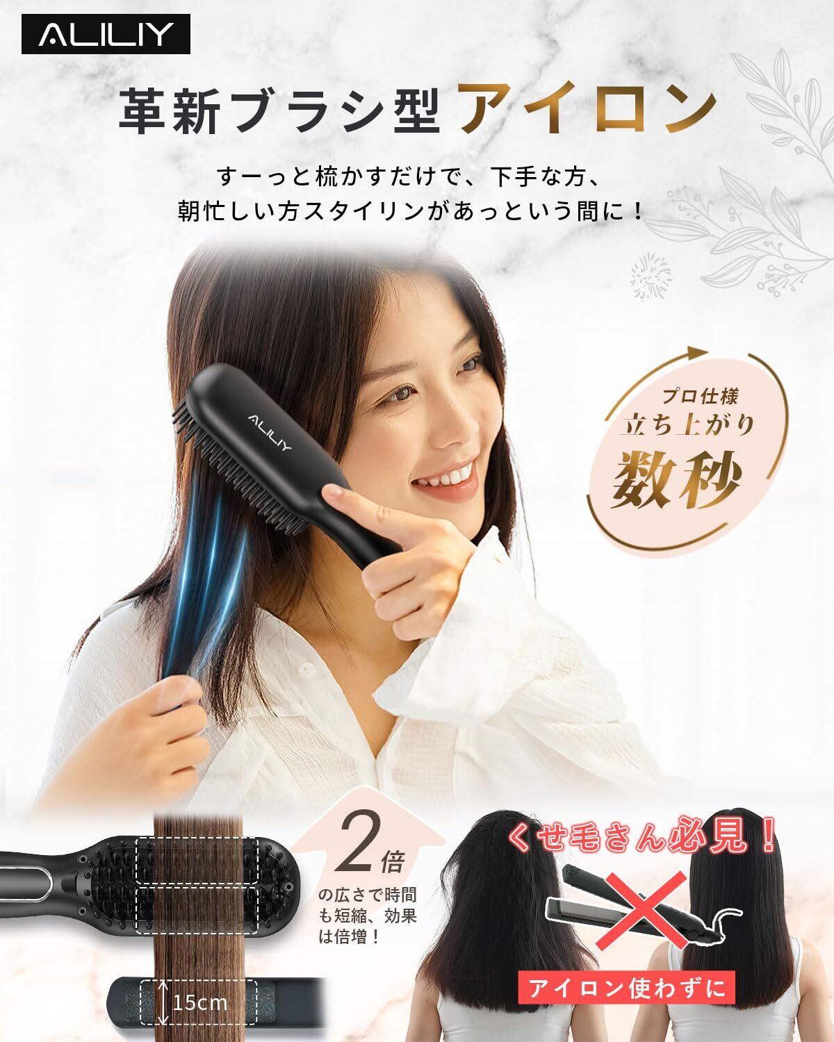 Aliliy ストレートブラシは、3000万のマイナスイオンを放出し、スタイリングしながら潤いのある美しい髪を実現します。ヒートブラシロンとして、ブラシ感覚で髪を整えるだけで、プロの仕上がりを簡単に楽しむことができます。