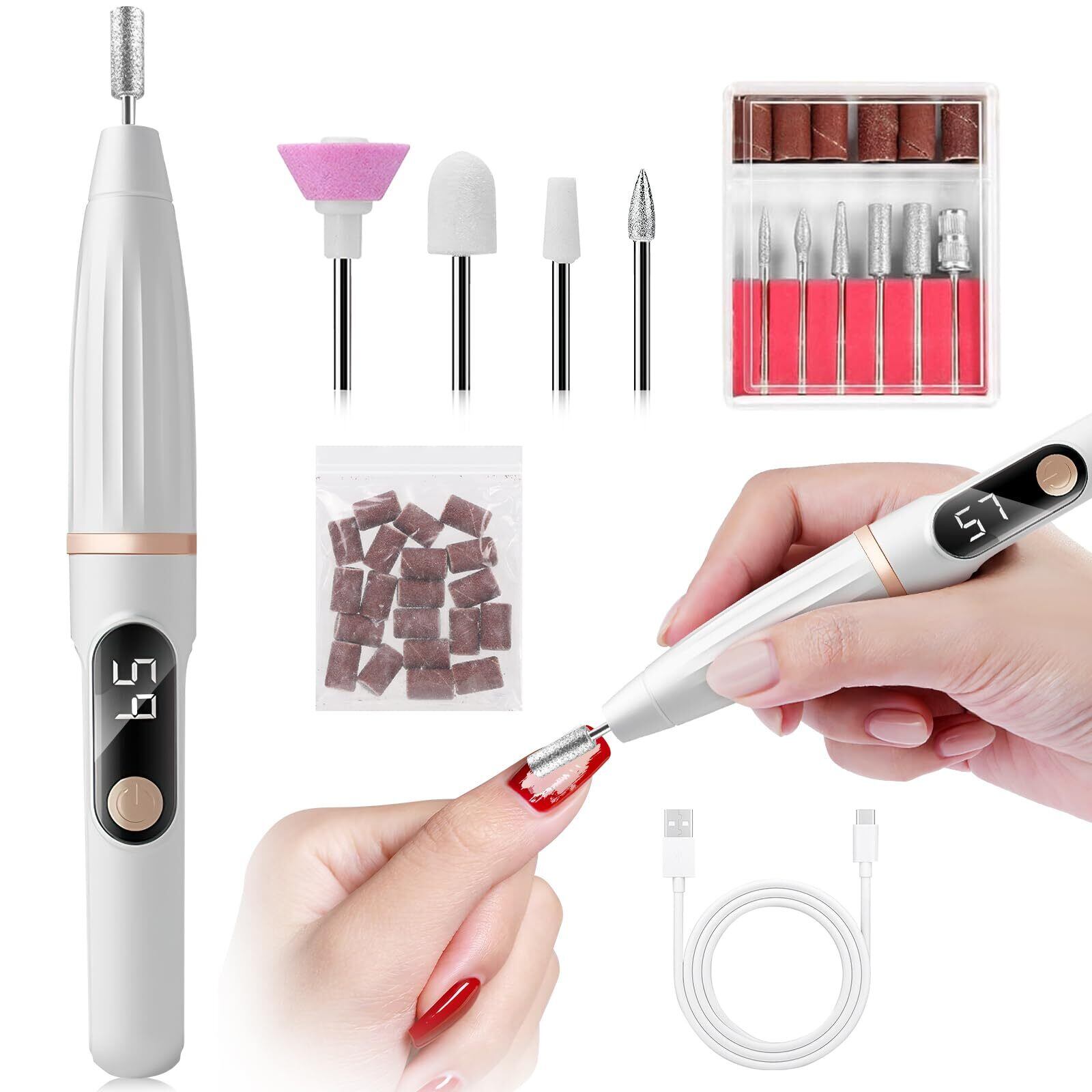 \【在庫セール】YAMOOCO ネイルマシン 電動ネイルマシーン コードレス 11点セット(ドリル10個付) 5段階スピード調整 正逆回転 ジェル除去/甘皮処理/爪磨き/ネイルケア全対応 USB給電 家庭用 初心者 セルフオフサロン適合/