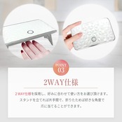 【2WAY仕様】 手持ちでも、スタンドを立てても使える便利な2WAY設計。角度を調整してセルフネイルも快適です。