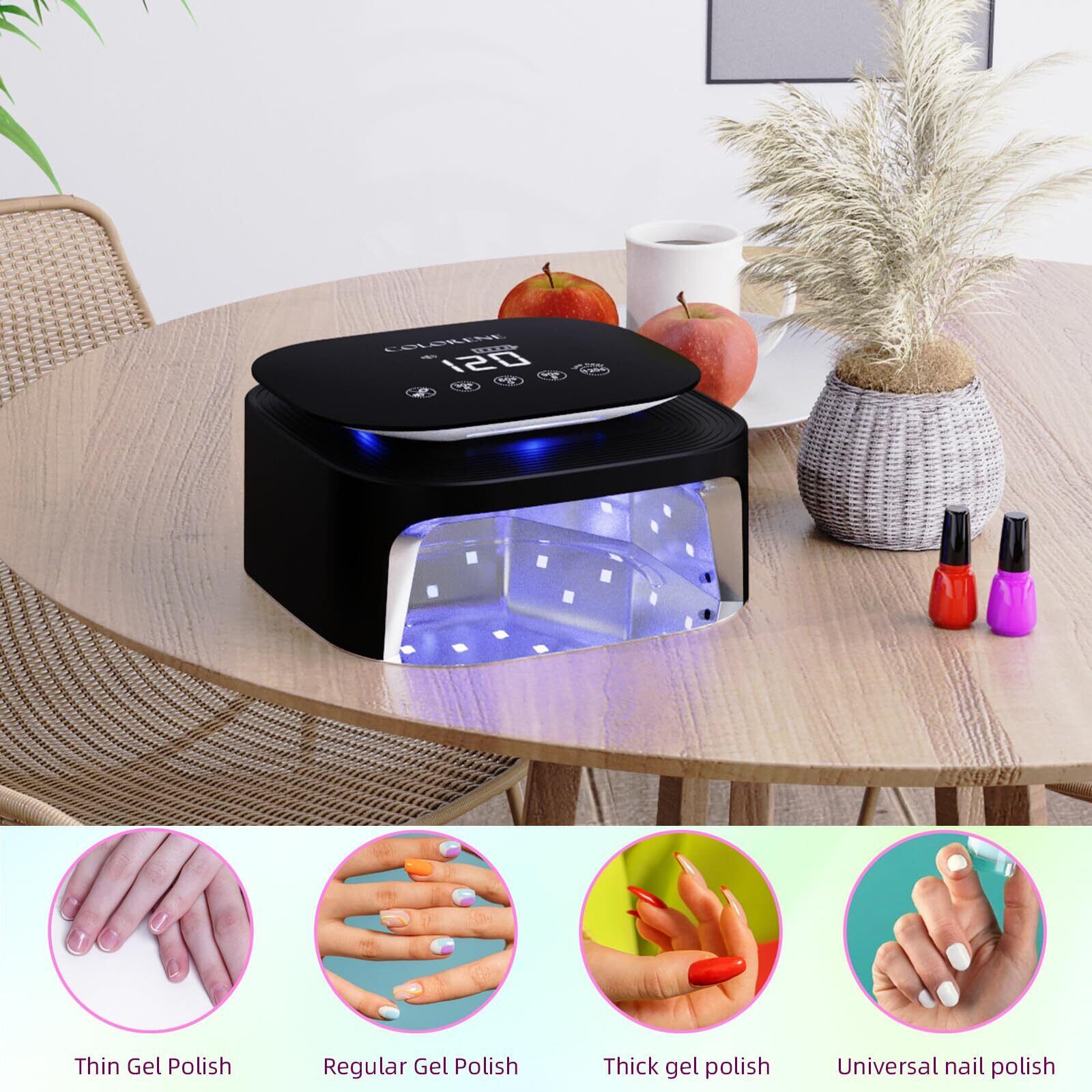 【30 ビーズとデュアル波長】30 個の UV ビーズで最大 60W の電力、デュアル光波长(365nm + 395nm)のランプビーズを備え、あらゆる角度から各種のネイルポリッシュを迅速に硬化できます。簡単なネイルのための 120 秒スマート無痛モードも選択できます。