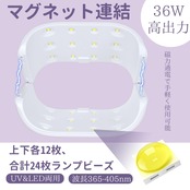 【365+405nmダブル光源設計】両面レジンライトは上下各12枚、合計24枚ランプビーズのダブル光源設計となり、波長365+405nmだからLEDとUVジェルの両方に対応可能です。ネイルライトのレンズに高硬度透明保護カバーを使用し、使用中硬化熱ほぼ感じません。肌や目に負担を掛かない優しい設計です。