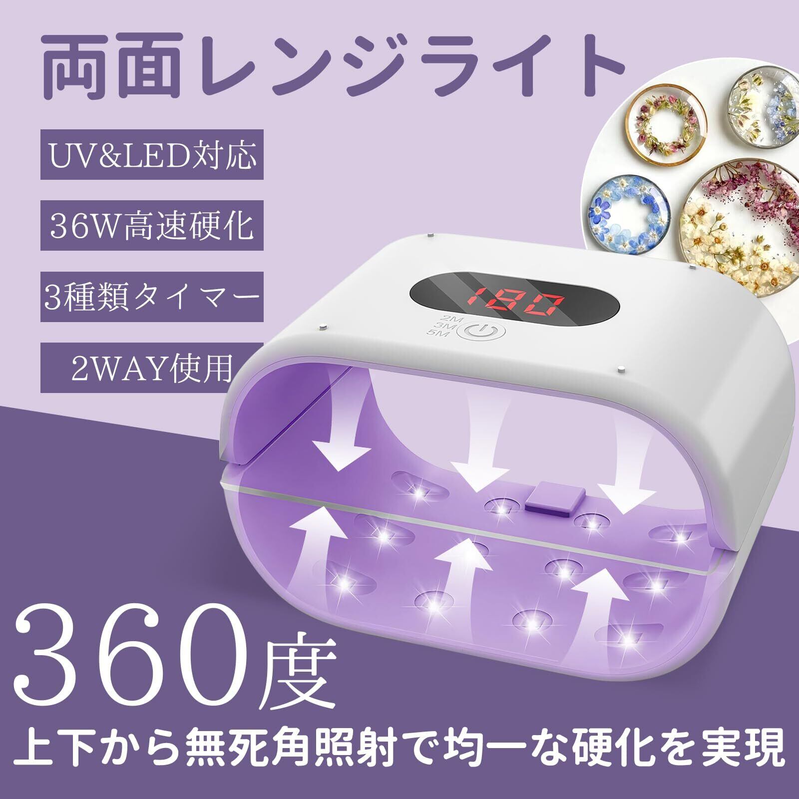【2025最新両面硬化ライト】2025最新型両面レジンライトは360度全方位から爪全体を均一に照射できます。従来の片面硬化と比べて、硬化効果と速度倍増し、収縮率を最小限に抑えます。36wの高出力はクラフトとジェルネイルのDIYに大活躍しています。
