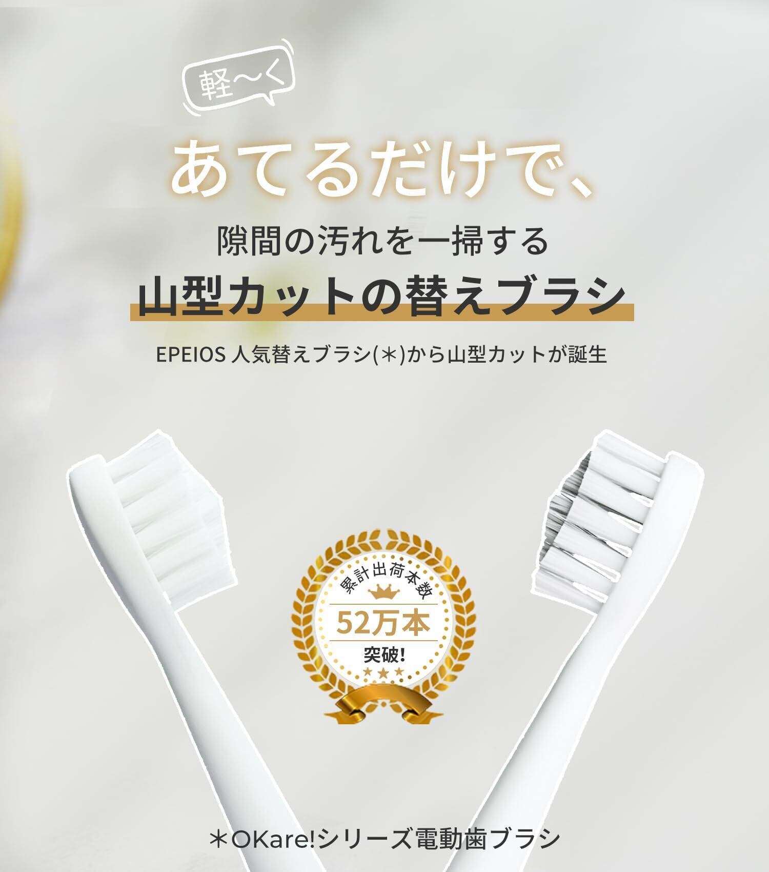 【EPEIOS 電動歯ブラシ 専用付替ブラシ】EPEIOS OKareシリーズ電動歯ブラシ 専用付替ブラシです。EPEIOS「OKare!ET003」「OKare!PRO」「OKare!GO」専用付替ブラシ、モデル:EPA2002)。※ 該当製品以外の他社製品や他のモデルではお使い頂けません。