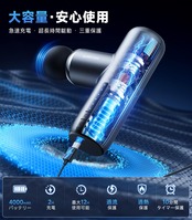 【長時間使用可能なバッテリー&安全設計】4000mAh大容量バッテリーを搭載し、Type-C充電で約2時間の充電で最大12時間の連続使用が可能(実際の使用時間は残量・環境・強度設定により変動)。過熱・過電流・短絡を防止する「Smart Protectシステム」を採用し、10分間の連続使用後は自動で電源がオフになります。