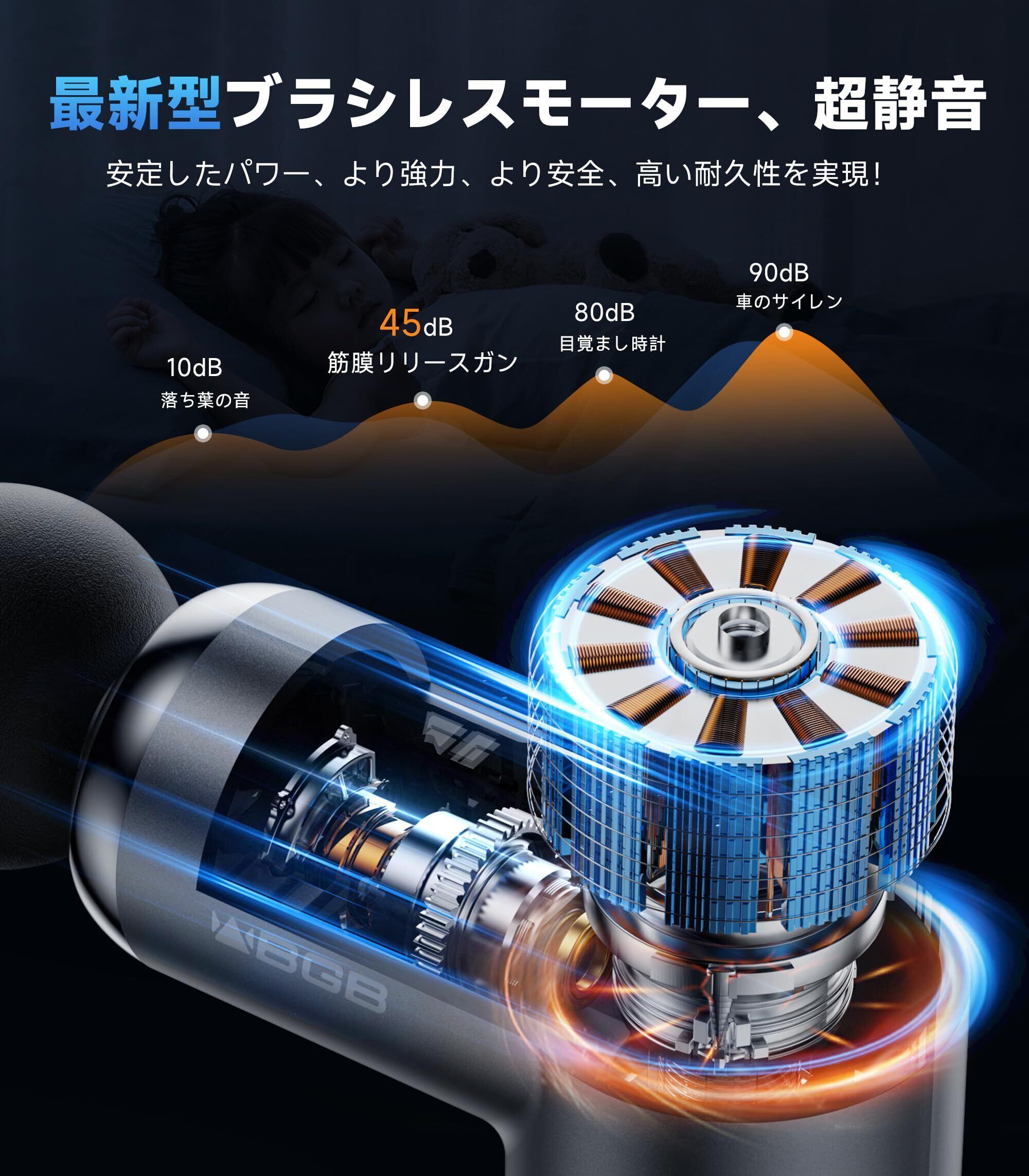 【パワフル・コンパクト設計】BGBハンディマッサージャーは、スマートフォンのようなコンパクトサイズながら、高性能ブラシレスモーターを搭載。わずか320gの軽量設計で、人間工学に基づいたグリップにより、片手でも扱いやすい仕様です。マット加工ボディで滑りにくく、汚れが目立ちにくいデザイン。ジム、オフィス、自宅、外出先など幅広いシーンで気軽にご利用いただけます。
