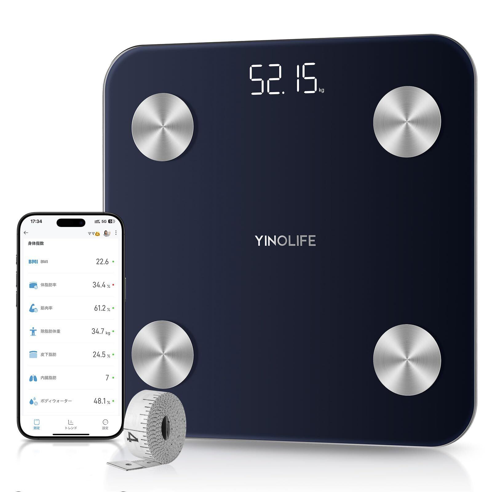 \【数量限定】YINOLIFE 体重計 体組成計 FG2317WB ダークブルー/