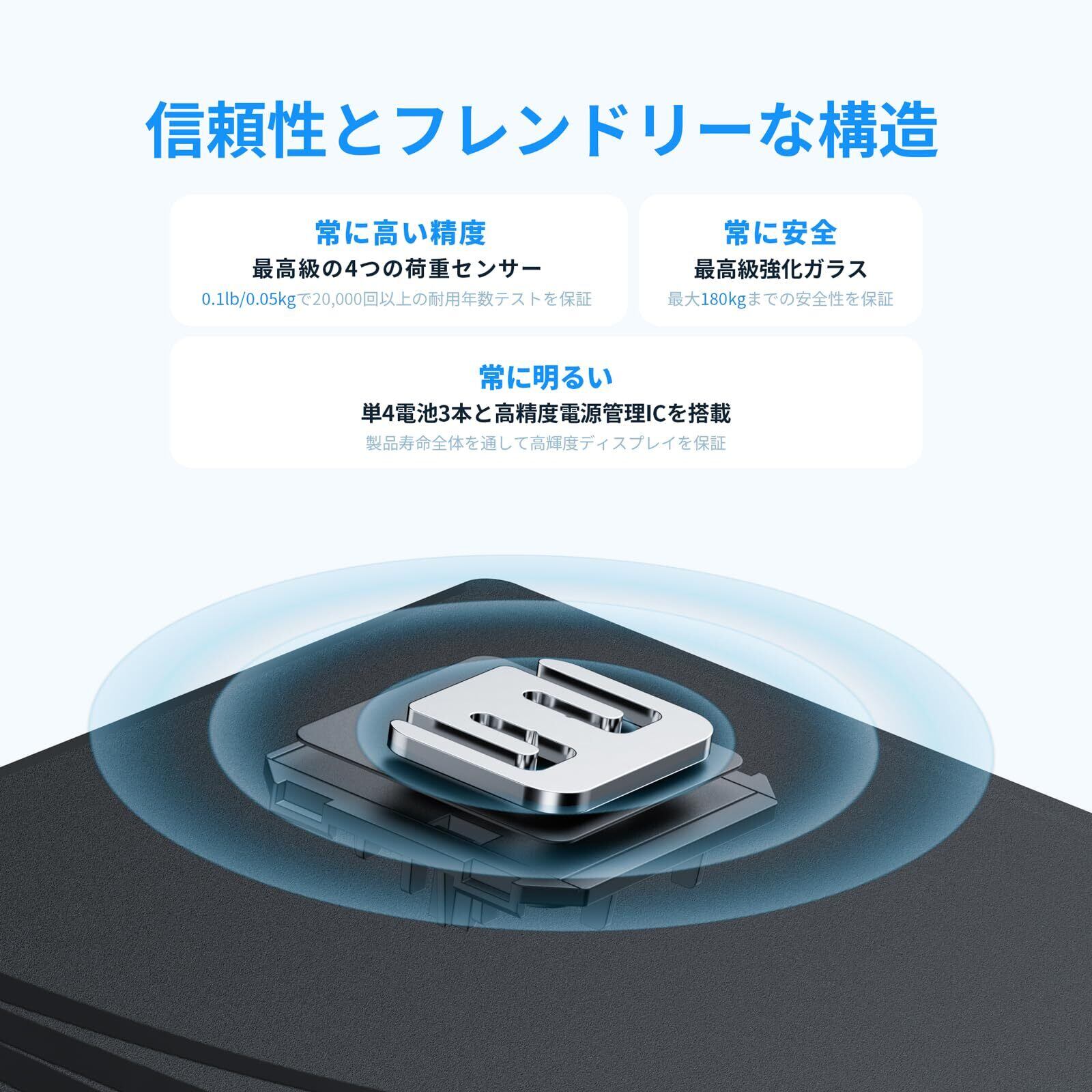 「高精度で安心!最大180kgまで計測可能!」