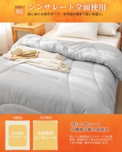 この掛け布団は、シンサレート素材を使用しており、羽毛よりも暖かい特性があります。重さわずか2.1kgで軽やかに、身体全体を包み込み、しっかりと保温します。冬の寒さから快適に守り、心地良い眠りをサポートします。