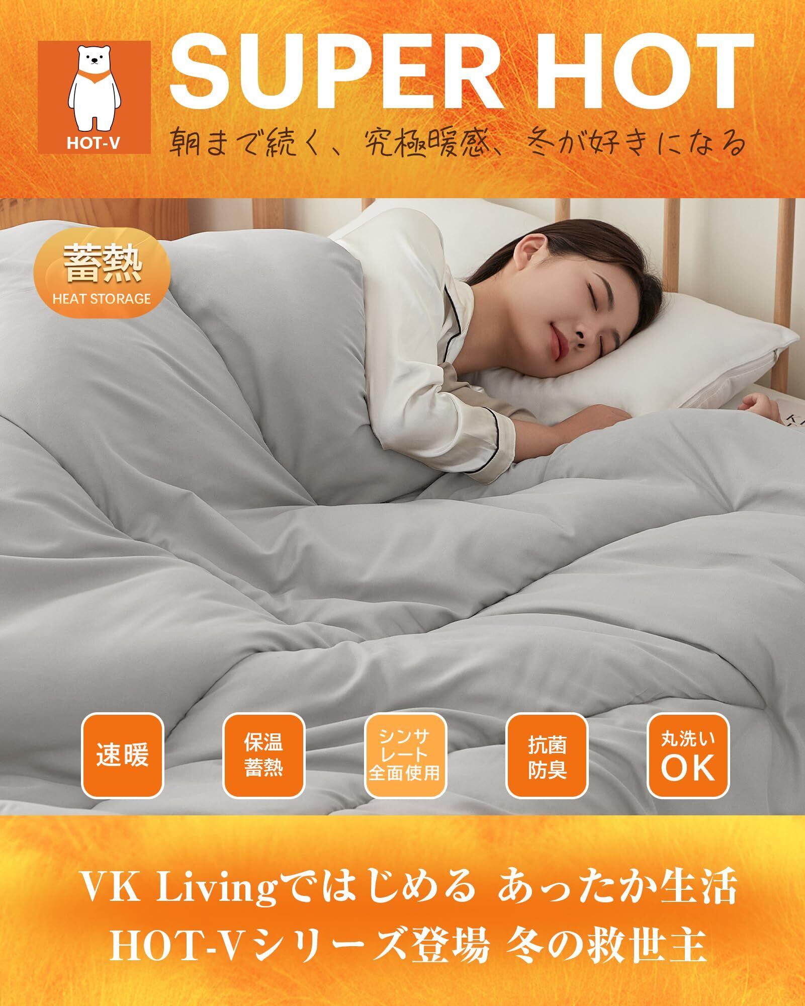 【特価セール】VK Living 掛け布団 シンサレート シングル 冬 羽毛より暖かい 【SUPER HOT】 洗える 2.1kg あったか 24時間持続制菌消臭 オールシーズン ほこりが出にくい 体にフィット 150x210 グレー