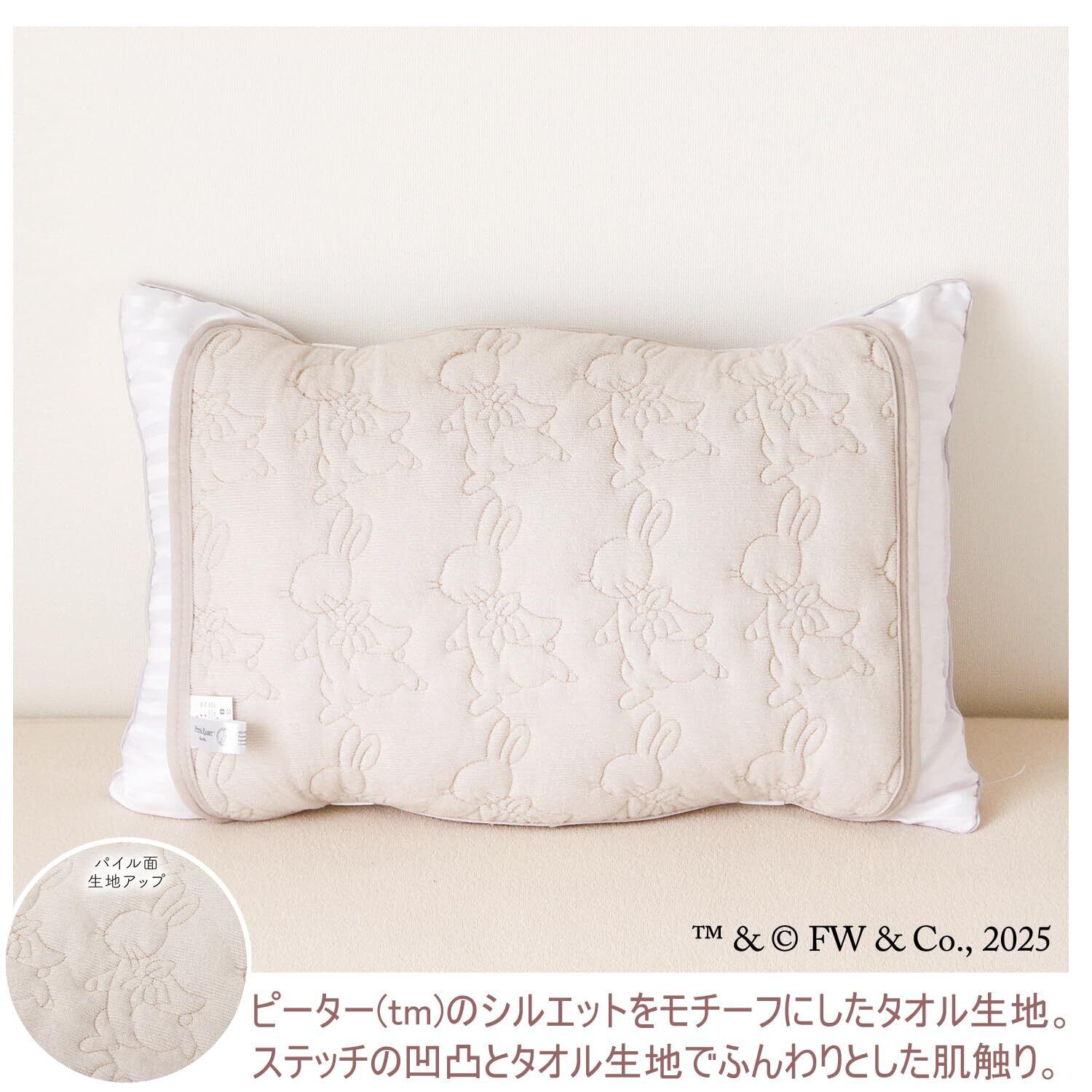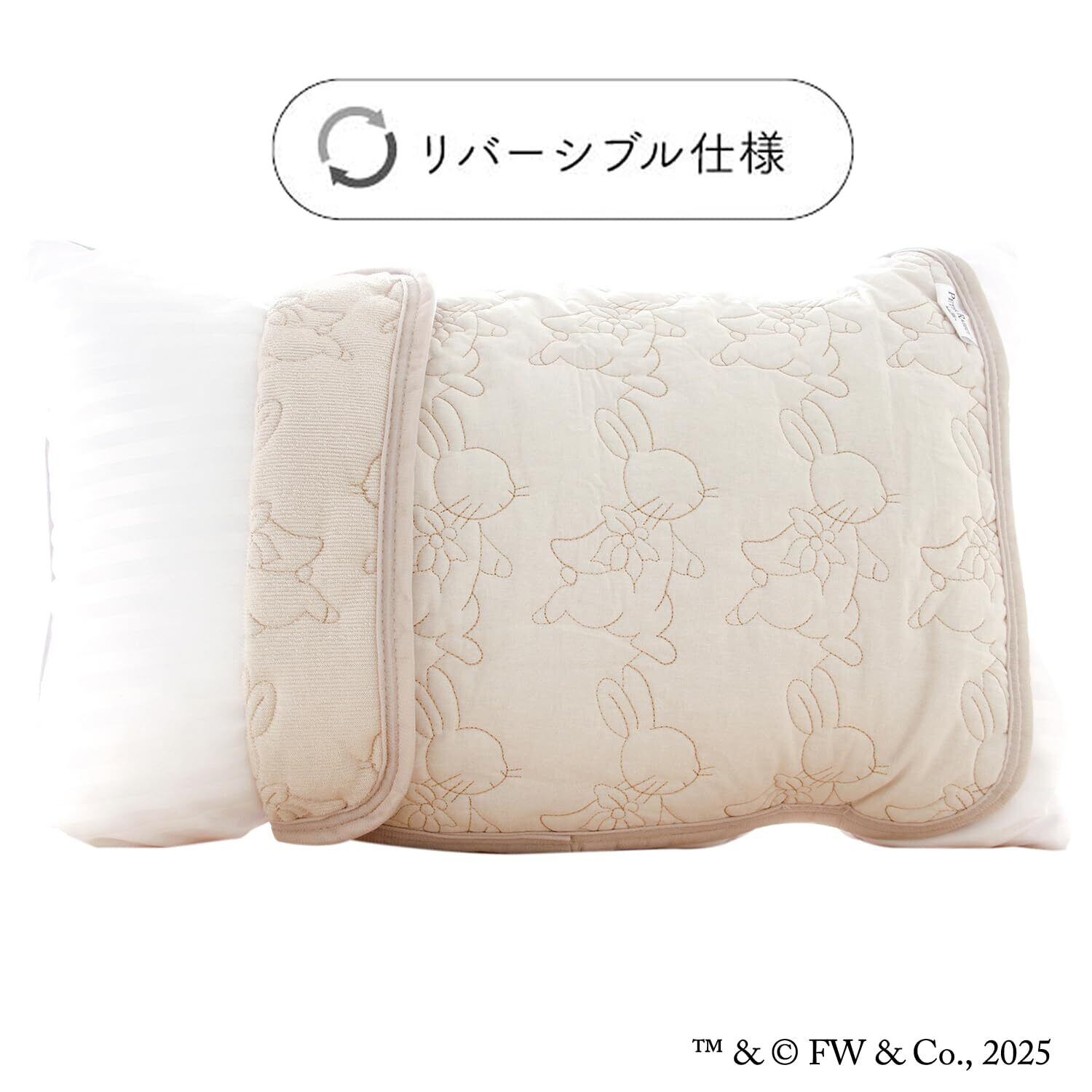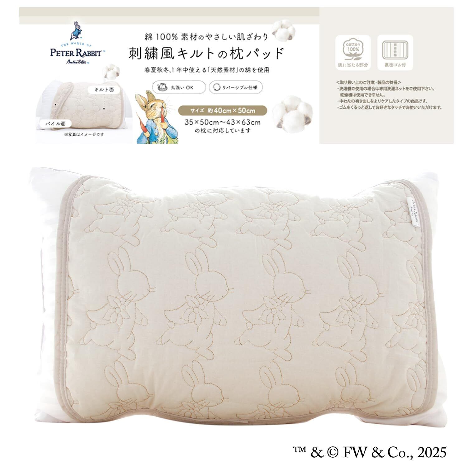 メリーナイト ピーターラビット(tm) 枕パッド 綿100% 「ラディッシュ」 ナチュラルベージュ キルト&パイル生地 リバーシブル仕様 両面使える 約40×50cm サラッと&ふんわり 好みや気温によって使い分け 吸水性 吸湿性に優れている ゴム付き 就寝中のズレを防止 洗える 衛生 清潔 年間使える 刺繍 デザイン シンプル 幅広い年齢層に PRMP4033-07