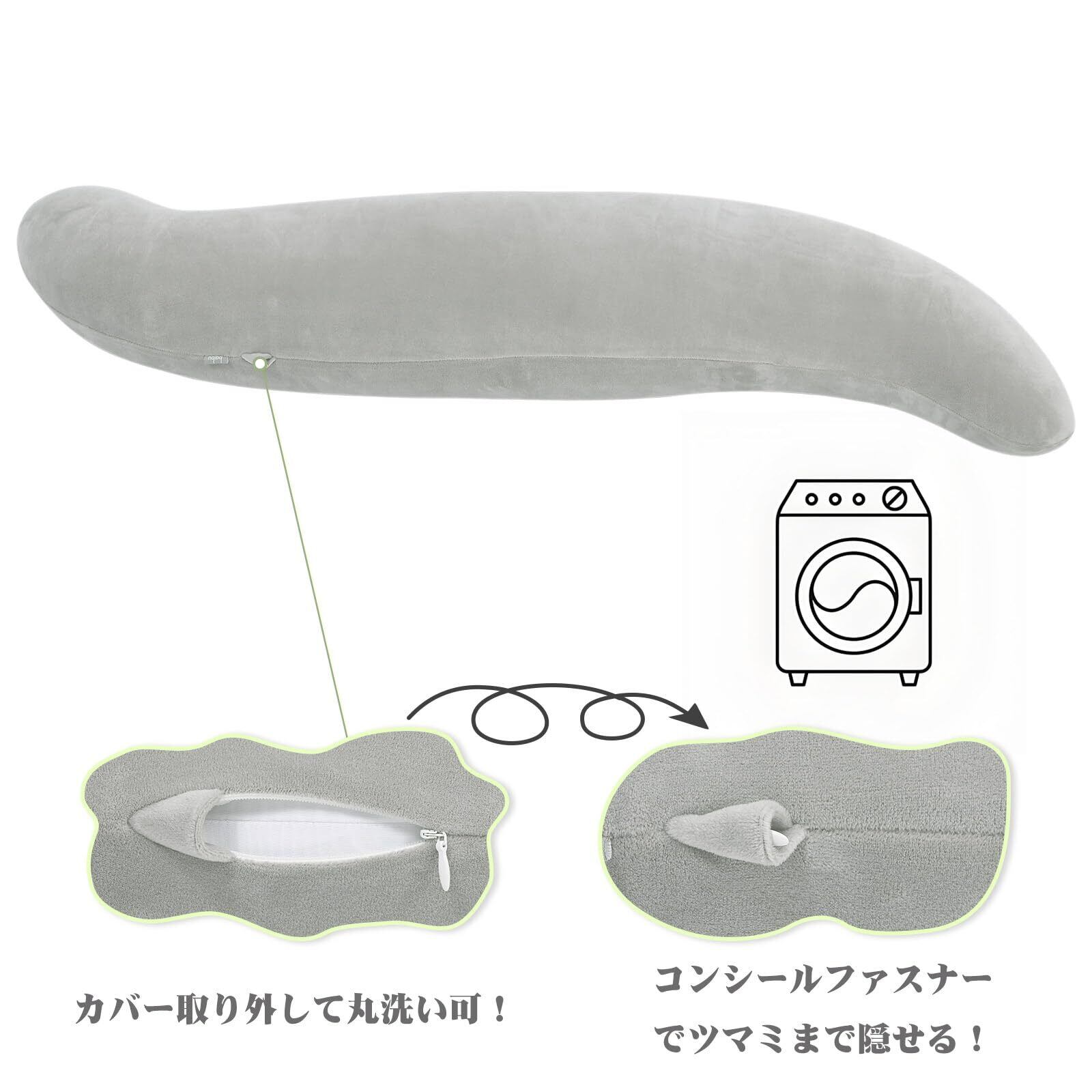 【在庫セール】Baibu Home 抱き枕 横向き寝 だきまくら クッション S字 体にフィット 気持ちいい 妊婦 クッション 主婦 枕 カバー洗える グレー