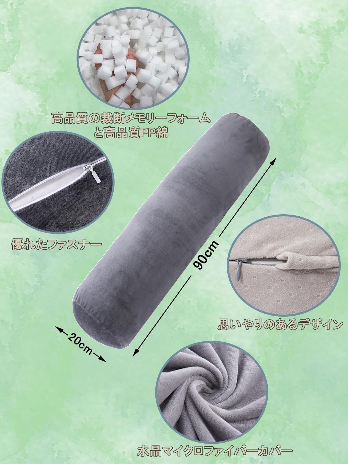 抱き枕 だきまくら だき枕 枕 円筒型 90x20cm 裁断メモリーフォームとPP綿充填 円柱クッション ロングクッション だきまくら 大きいサイズ 男女兼用 横向き寝 人気プレゼント ボディーピロ 取り外しカバー付き(グレー)