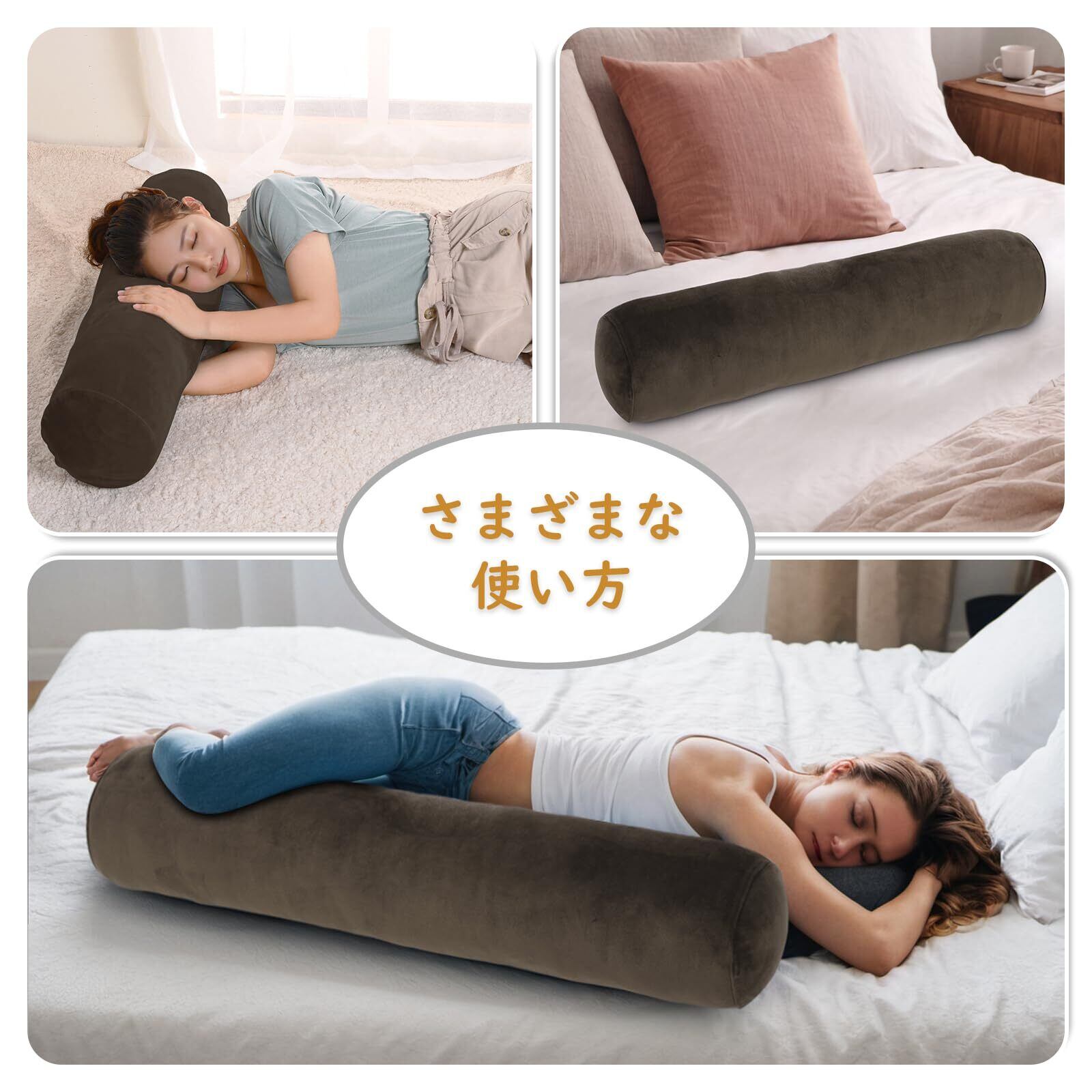 GOFORIT 抱き枕 クッション だきまくら 円柱 横向き寝 気持ちいい もちもち 枕 カバー洗える ブラウン ソフトボア生地