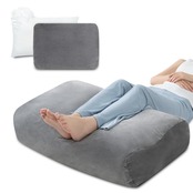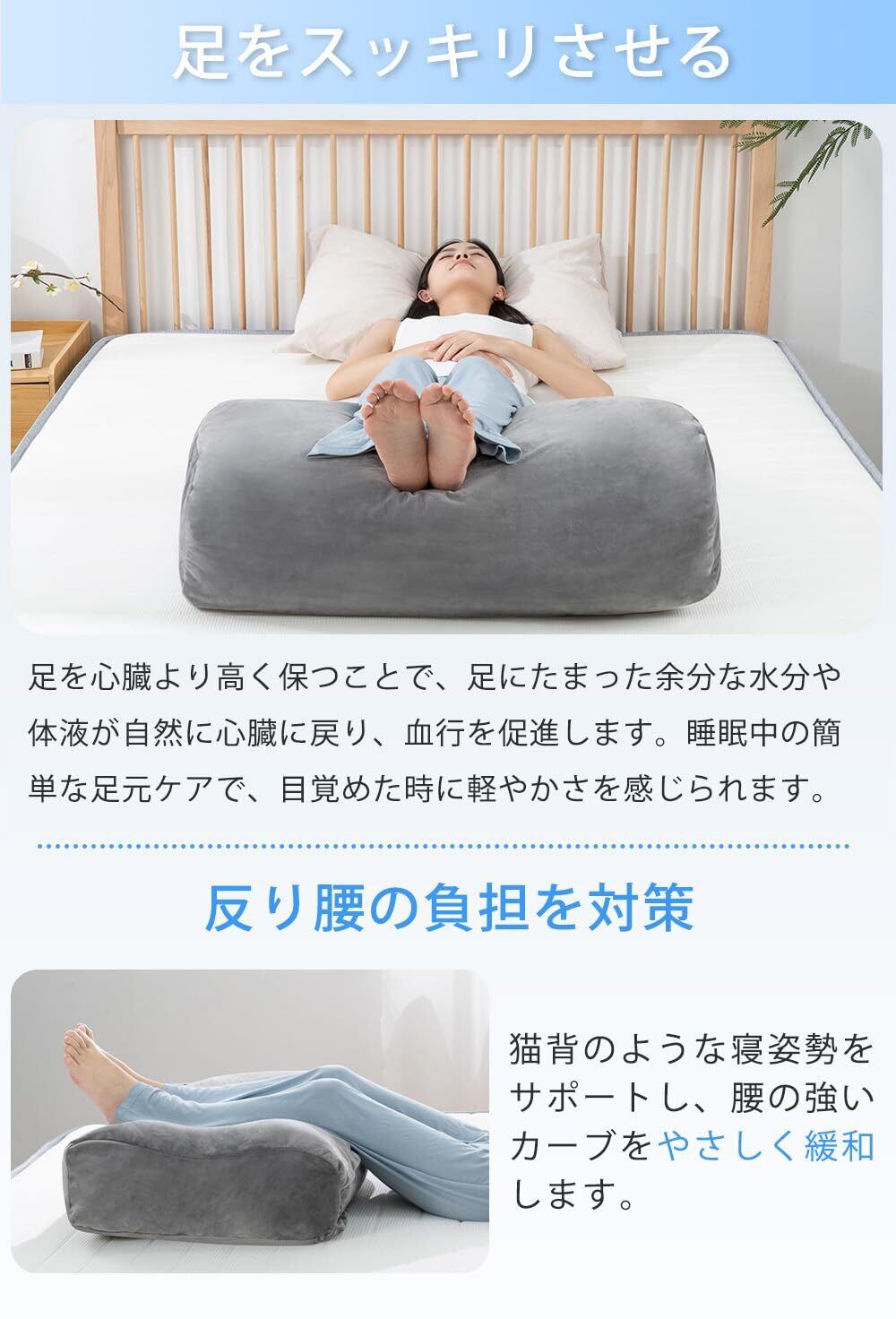 Queen Rose 足枕 就寝用 足置き クッション ベロア素材【補充綿付+高さ調節可能】二重洗えるカバー設計 横向き寝対応 整体師推奨 むくみ 反り腰 フットレスト 快眠サポート ふくらはぎケア ランバーサポート グレー
