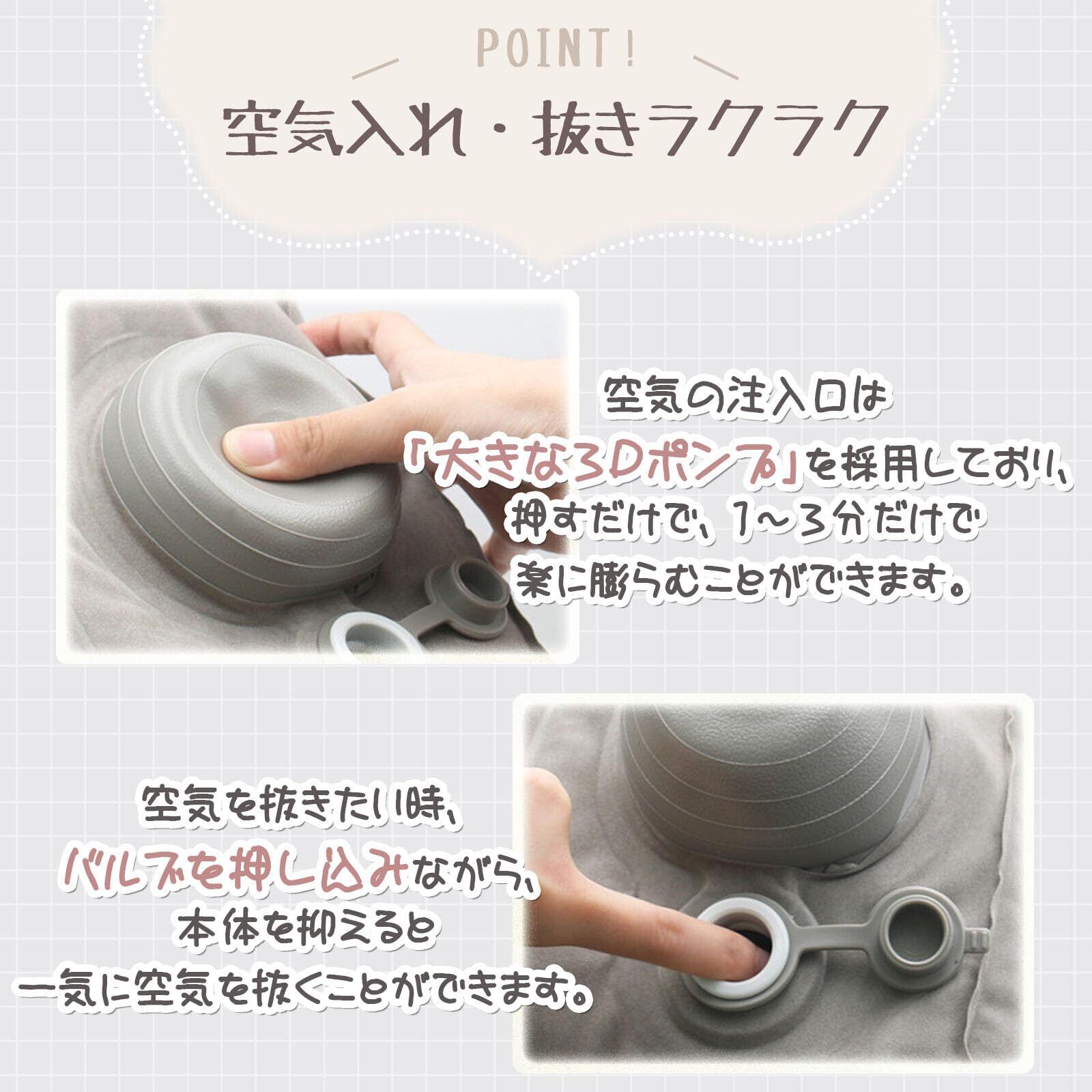 【空気入れ・空気抜きラクラク】空気の注入口は「大きな3Dポンプ」を採用しており、ポンプを押すだけで、1~3分だけで楽に膨らむことができます。空気を抜きたい時、バルブを指で押し込みながら、本体を抑えると一気に空気を抜くことができます