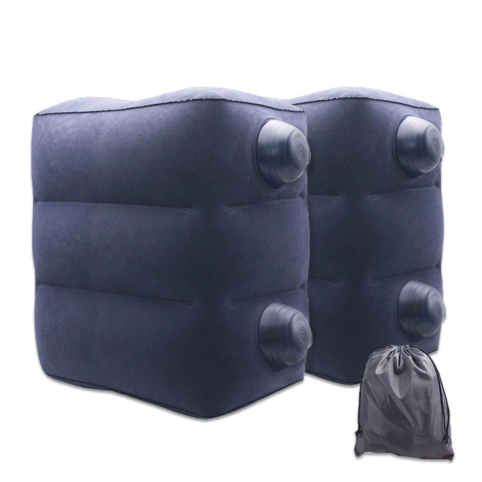 BubuBubu 足置き 足枕 クッション エアーフットレスト エアーオットマン 携帯便利 3Dポンプ付き 足元クッション 空気入れ簡単 空気抜き簡単 3段階高さ 収納袋付き 旅行便利グッズ オフィス デスク下 オットマン 足置き台 飛行機 車用 車中泊 就寝用 足のむくみ エコノミー症候群対策 2個セット (ブルー2)