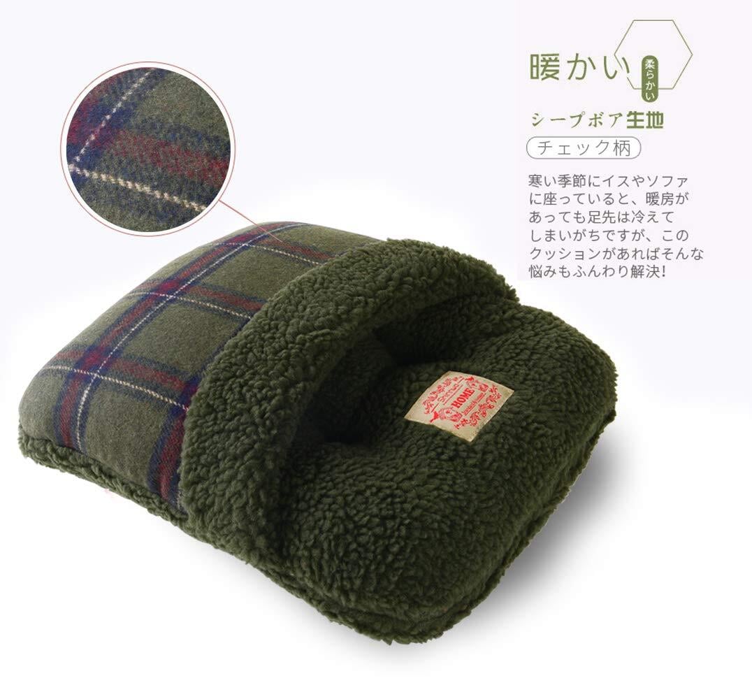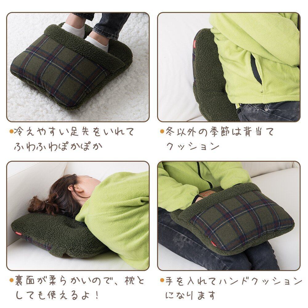 Shinnwa 暖か 足入れクッション 足ぽかクッション フットイン ハンドイン チェック柄 3色展開 30*35cm グリーン
