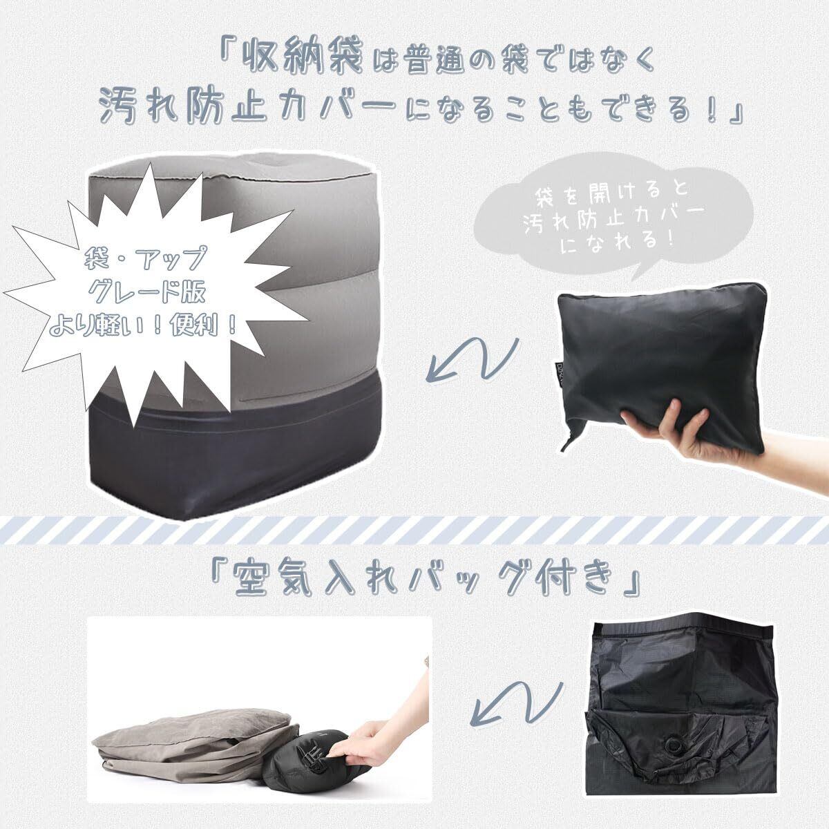 dodulara エアーフットレスト 足置き 足枕 携帯便利 ポンプ不要 クッション 空気入れ簡単 3段階高さ 収納袋付き 旅行便利グッズ オフィス 飛行機 車用 足のむくみ エコノミー症候群対策 (グレー)