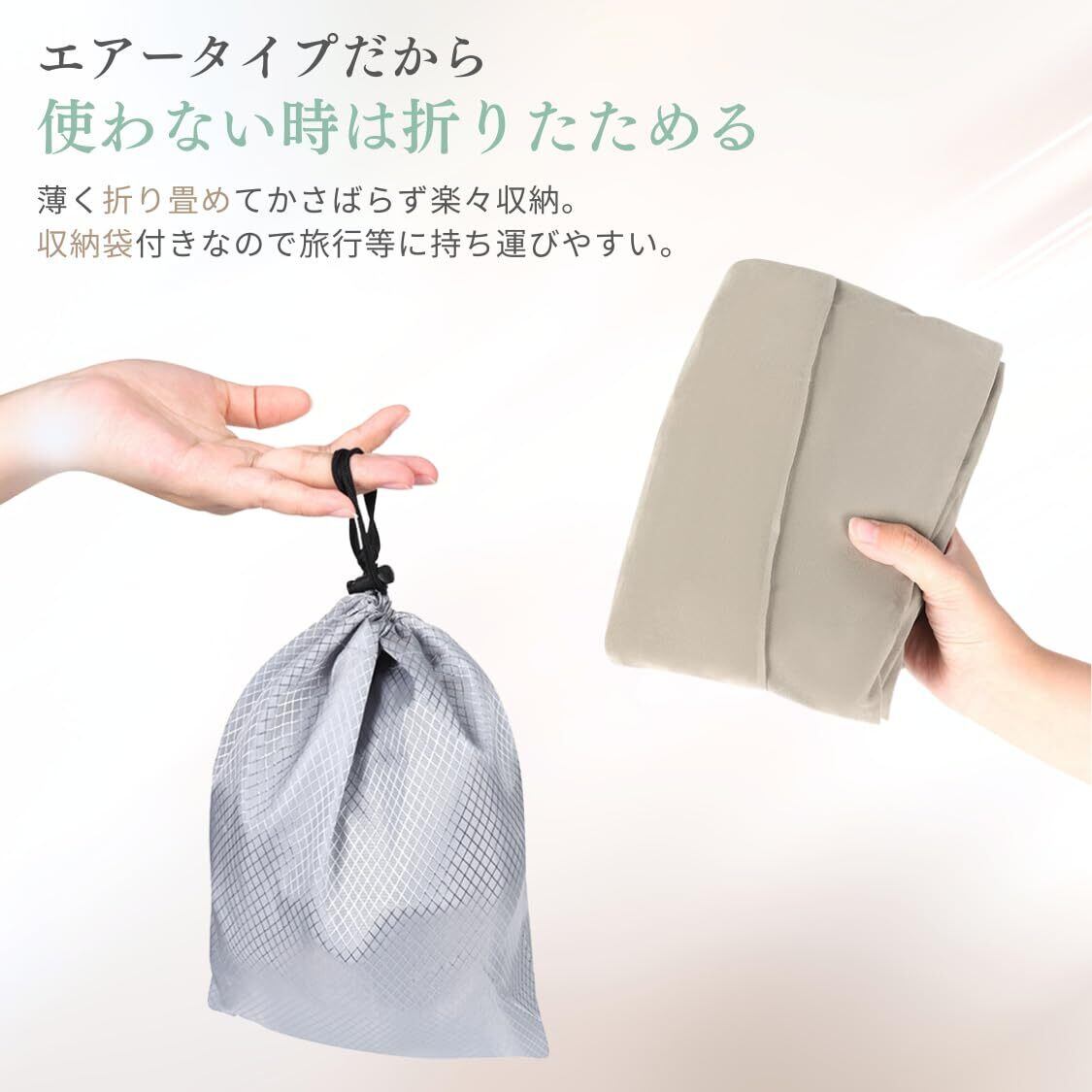 空気を入れるだけで簡単に膨らませられ、数分で快適な足枕を作成できます。使用後は空気を抜いてコンパクトに折りたためるので、収納にも困りません。また、専用の収納袋が付いているため、持ち運びもラクラクです。