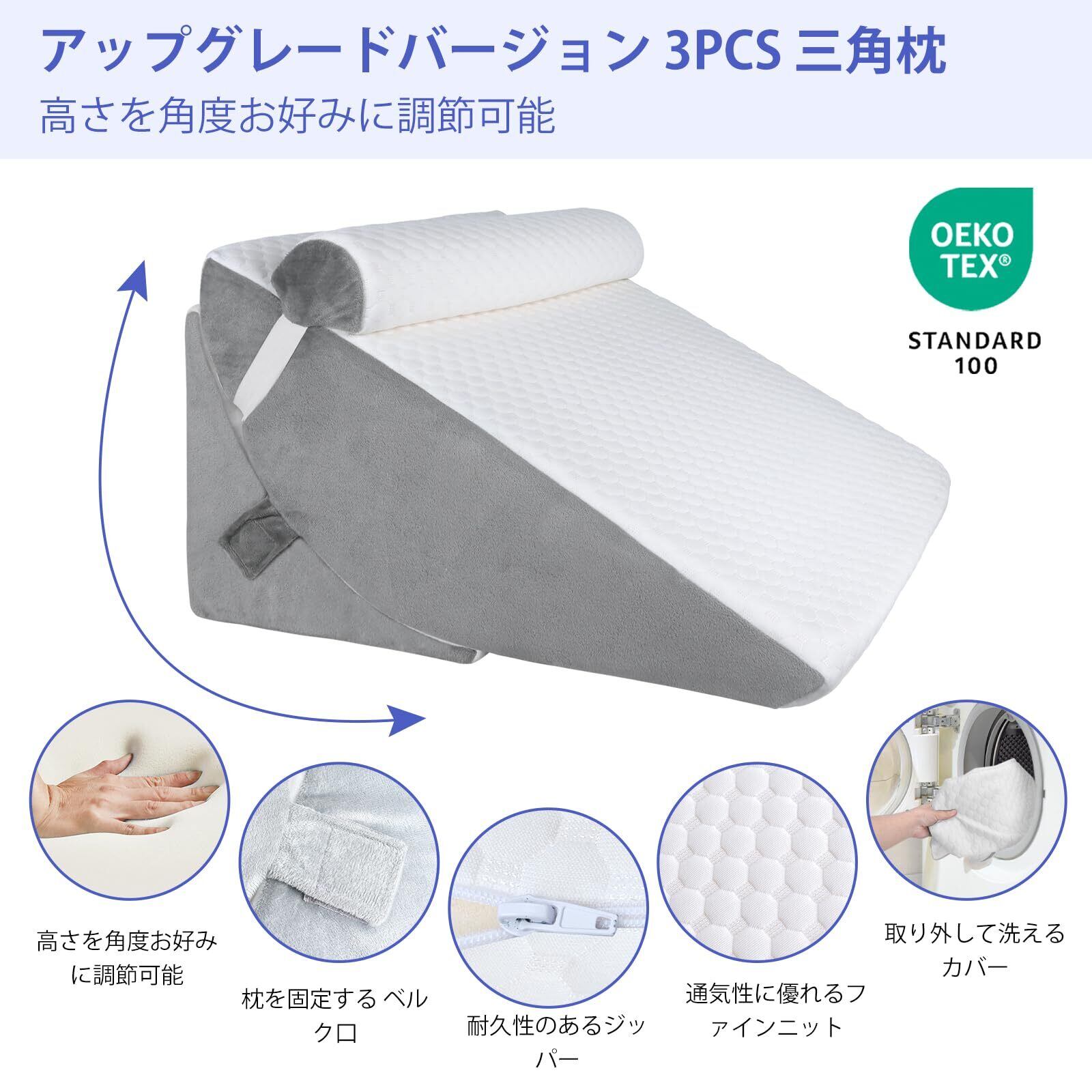 \【人気商品】INFANZIA 三角クッション 三角枕 3個セット 背もたれ クッション 高さ調節可能 傾斜枕 足まくら 横向き寝 折りたたみ式 腰枕 就寝用 大きい 高反発 ウェッジ枕 体位変換 イビキ改善 お年寄り 老人用 (白とグレー)/