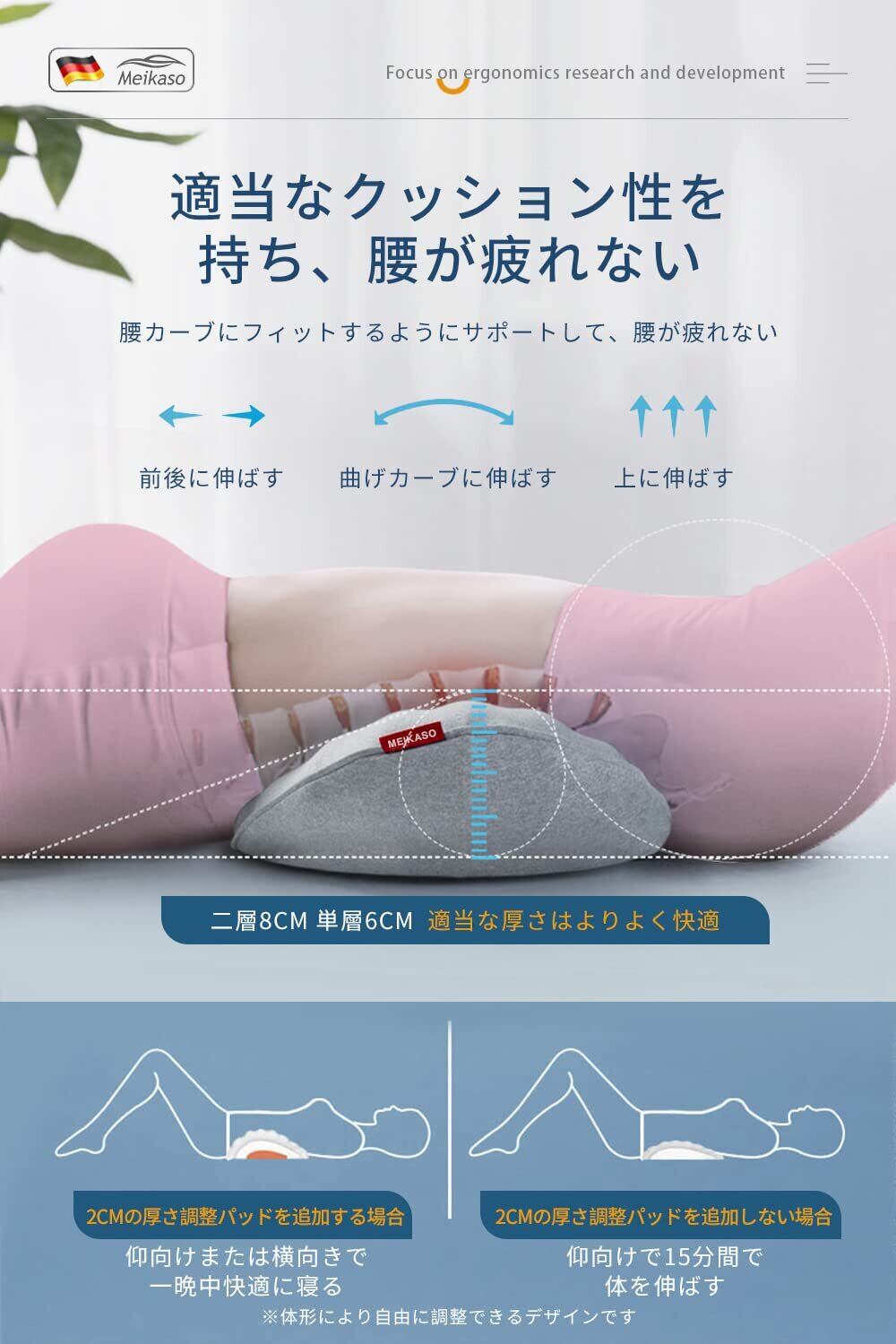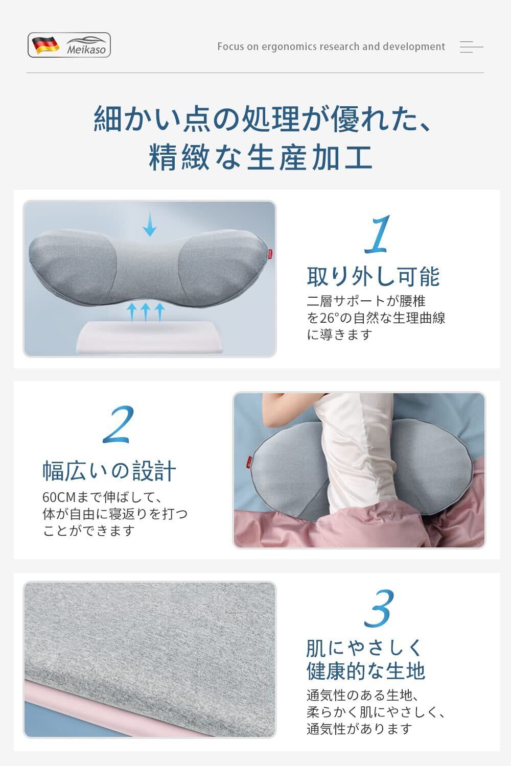 【整体師監修】Meikaso 寝る時クッション低反発 腰クッション腰枕 腰まくら 就寝用腰楽安眠サポート体圧分散 通気性 反り腰 ランバーサポート足腰枕 足のむくみ 寝る時 膝枕 高さ調節可能 カバー洗える運転手/サラリーマン/高齢者に適用 敬老の日 ギフト