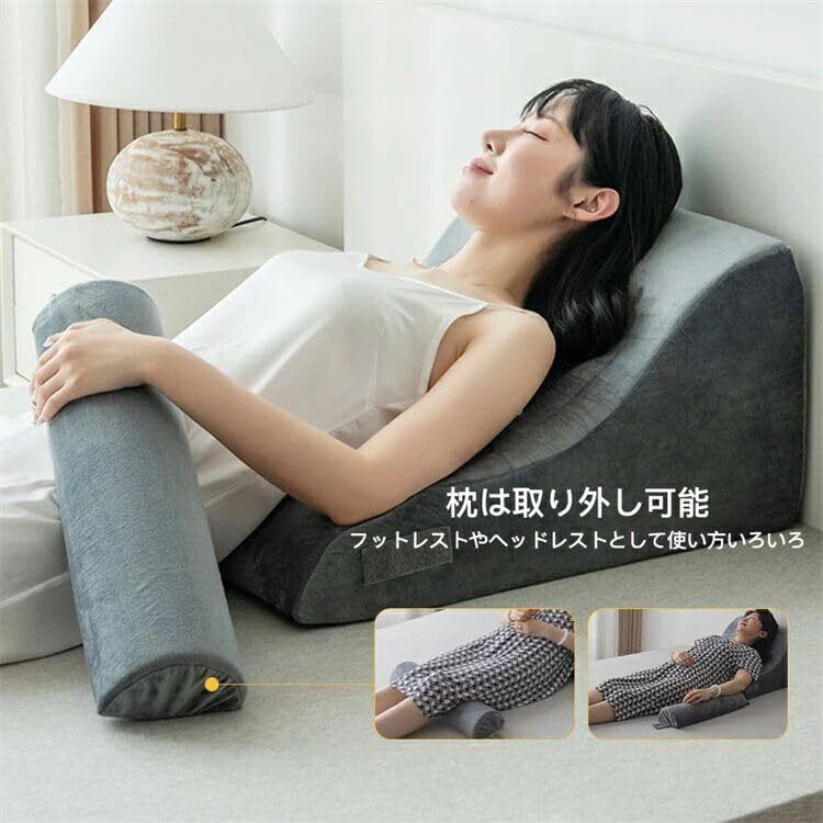 この产品には足枕が付属しており、足元もサポート。腰だけでなく、全身の疲れを軽減し、快適な姿勢を維持できます。さらに、逆流性食道炎にお悩みの方にもおすすめです。お好みに合わせて使い方は自由自在です!