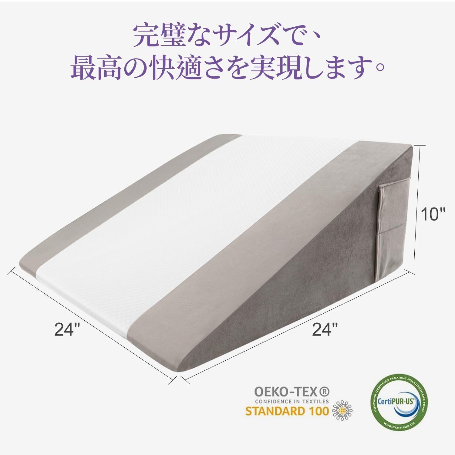 人間工学に基づいた快適性:10インチ x 24インチ x 24インチ(約25cm x 61cm x 61cm)のウェッジ枕は、柔らかく快適なフィット感で選ばれ、体を包み込み、体重を均等に分散させ、首、肩、背中の圧迫点を和らげます。 横向きで寝る方、仰向け、うつ伏せ寝の方に最適です。