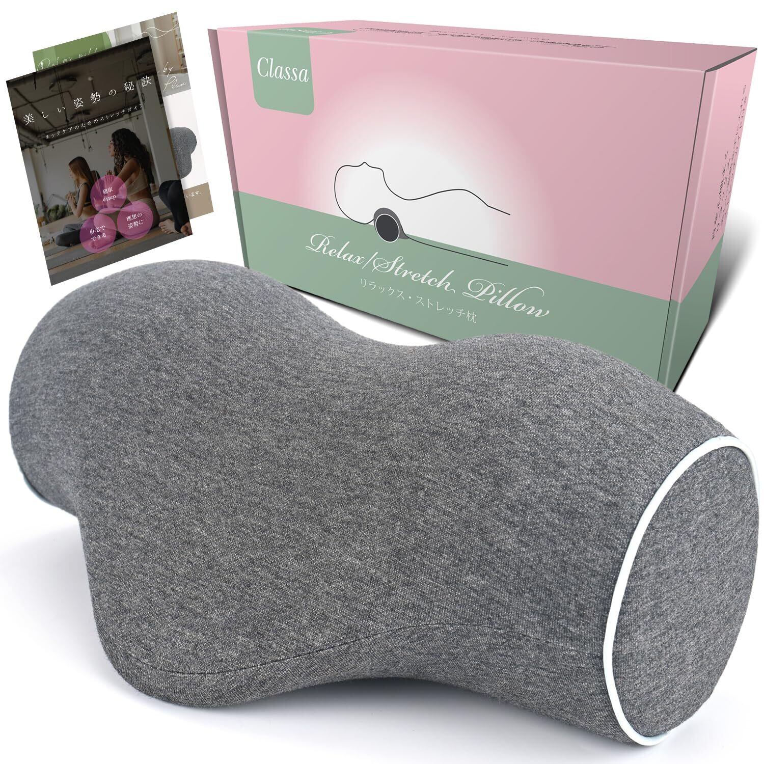 首枕 ストレッチ 首 【メディアで話題】 柔道整復師監修 独自密度設計 低反発 記憶形状フォーム ネック ピロー ストレート 肩 肩甲骨 リラックス 美姿勢ストレッチガイドブック付 Classa クラッサ (グレー*ホワイト)