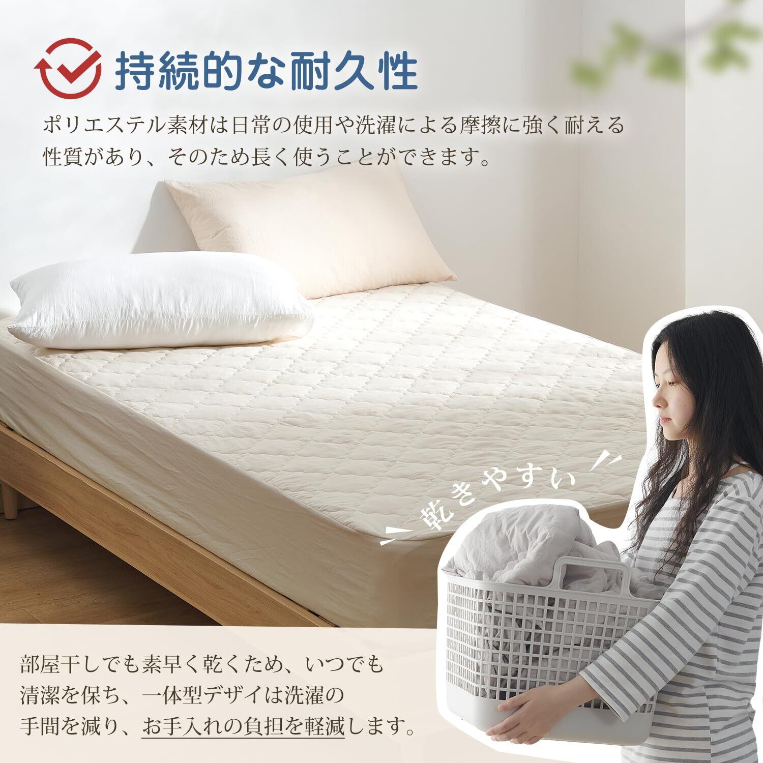 敷きパッドとボックスシーツが一体化している:敷きパッドとボックスシーツが一体化しており、装着が簡単で便利です。