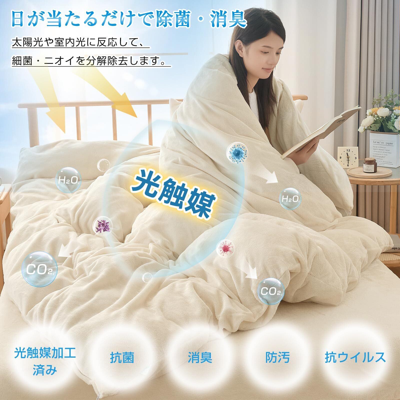 CICA保湿加工が施されており、乾燥から肌を守ります。さらに、99.9%の防ダニ効果と抗菌防臭加工により、毎晩清潔感を感じながらお休みいただけます。冬の防寒対策に最適な一枚です。