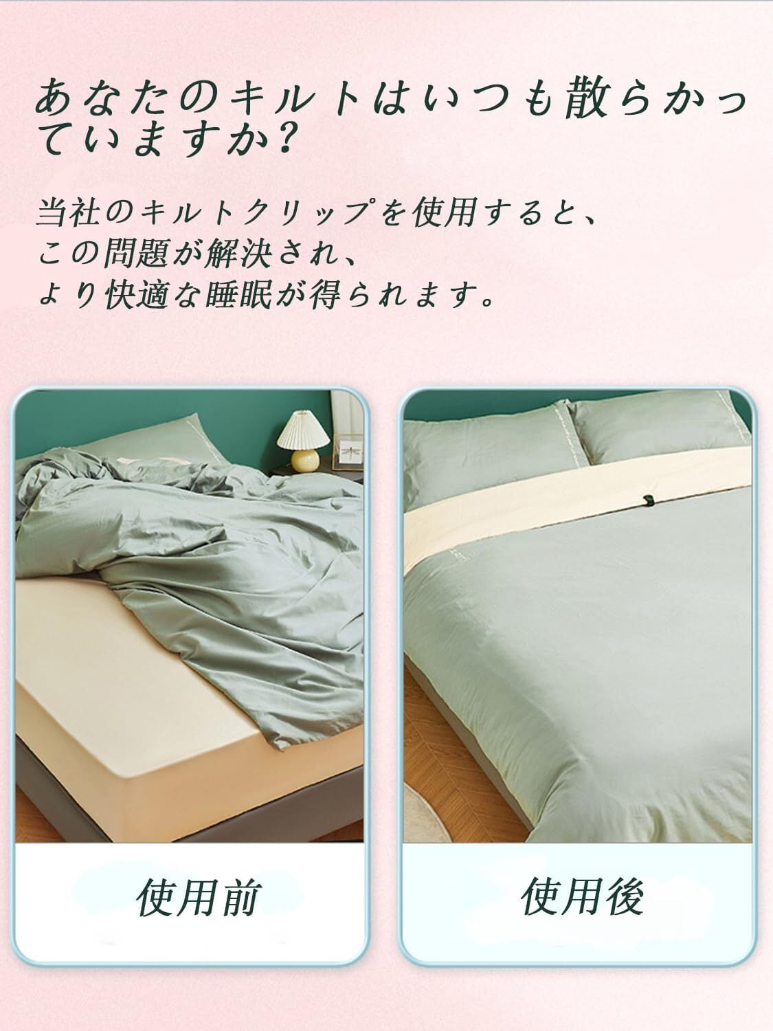 【幅広い用途】羽毛掛け布団、厚手の掛け布団、厚手の掛け布団、厚手の掛け布団カバー、厚い掛け布団カバーを収納できるだけでなく、当社のキルトクリップは他のほとんどの場面で使用できます。 例えば、カーテンを固定したり、風で飛ばされるのを防いだり、靴下などの小物を収納したりすることができます。 これにより、家庭環境がより整頓されます。
