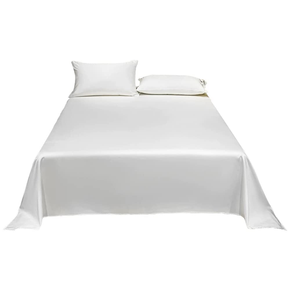 \【新着商品】フラットシーツ シングル 綿100% 敷きシーツ サテン織り 300本高密度生地 コットン 防ダニ 抗菌 防臭 ホテル品質 滑らか 柔らかい 選べる8色 無地 150×250cm 白 ホワイト/