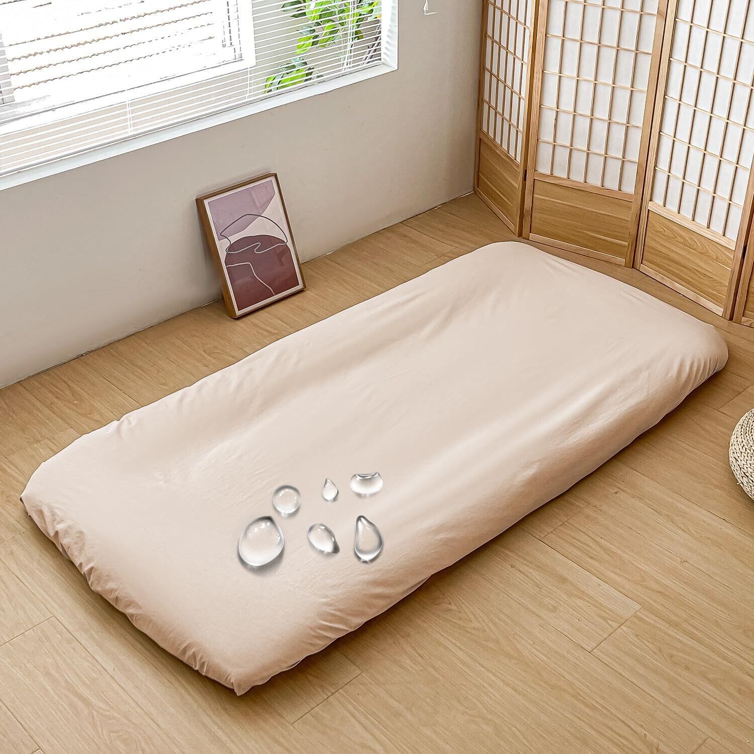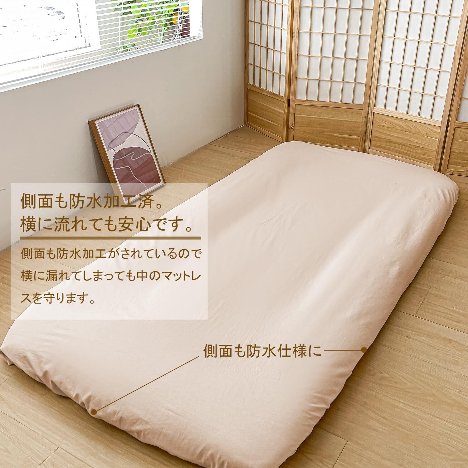 防水シーツ 敷き布団カバー シングル 全面防水 ワンタッチシーツ 敷き布団用 フィットシーツ 敷布団カバー 敷きぶとんカバー 敷きカバー 敷きシーツ 敷カバー 大人用 赤ちゃん 介護用シーツ 洗い替え 防ダニ 抗菌 (エクルベージュ, シングル・105×215cm)