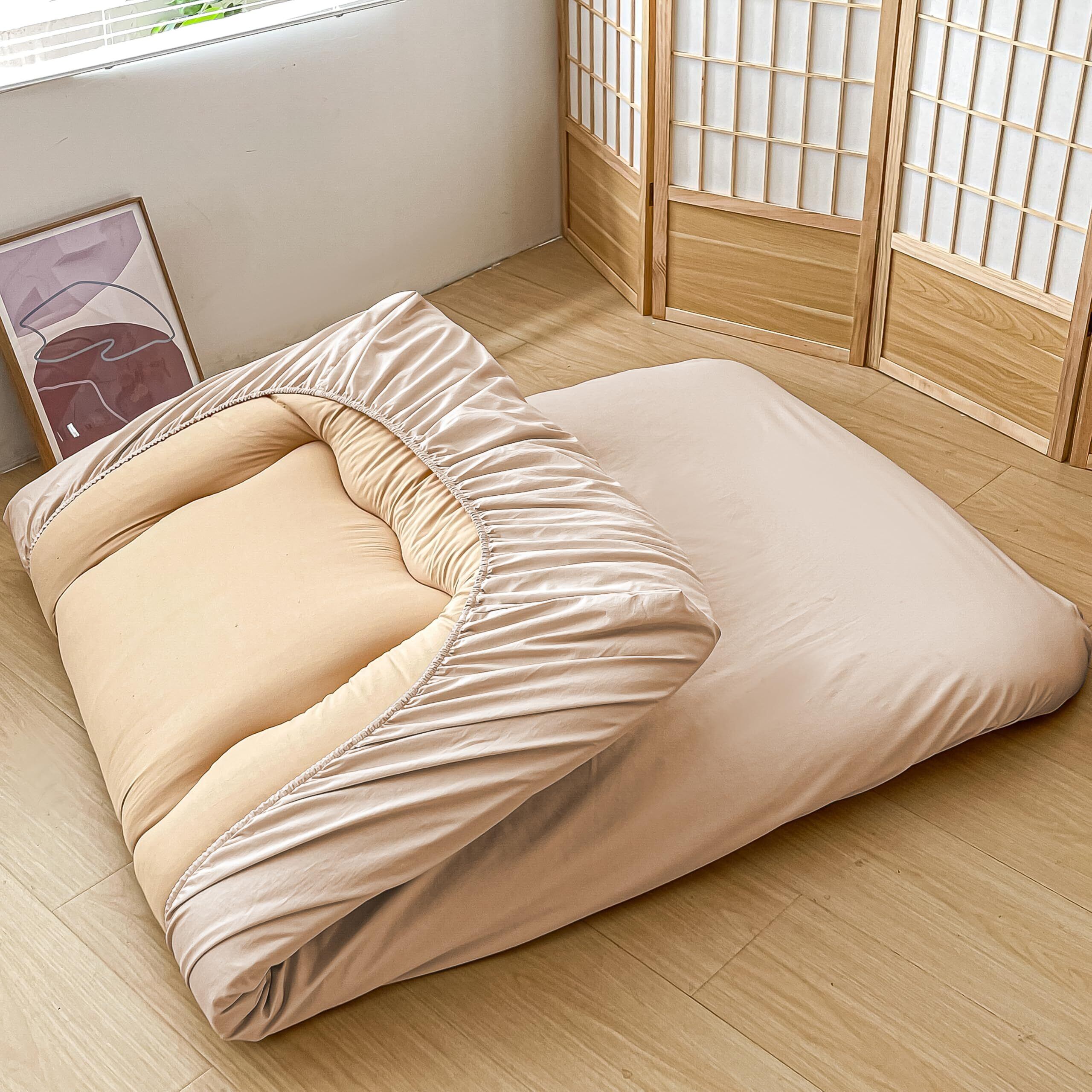 【サイズ】シングル:約105x215㎝×厚み最大20cm対応 、敷き布団(100x210cm)に適用です。(裏側はズレにくい全周ゴム仕様で着脱も簡単です)