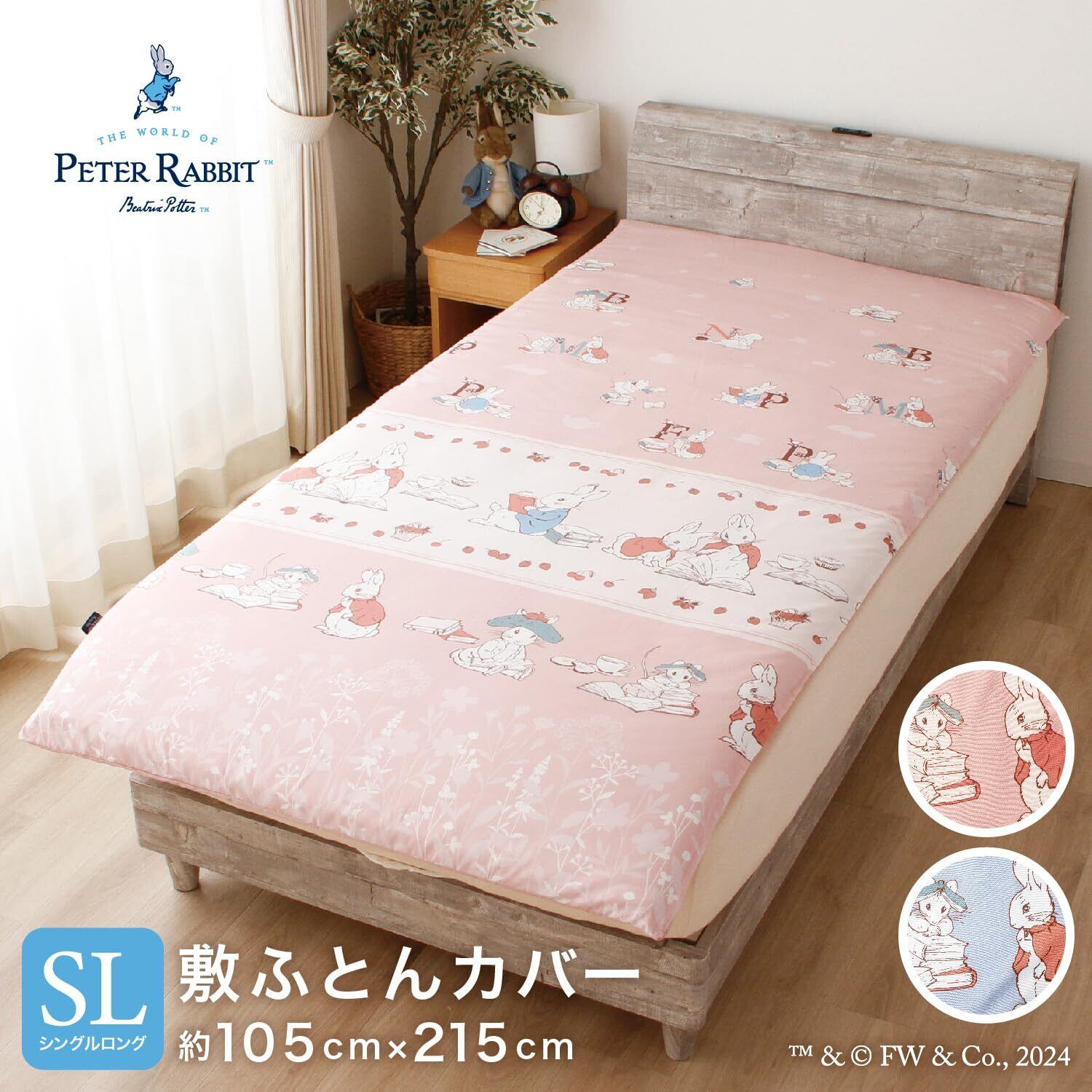 メリーナイト ピーターラビット(TM) 敷布団カバー 「リトルブック」 ベビーブルー 約105×215cm シングルロング 出し入れ簡単 片側210cmファスナー 敷きふとんサイズ 100×210cm用 ポリエステル ピーチスキン加工 滑らかな肌触り速乾 シワになりにくい お手入れ簡単 カジュアル 大人可愛い プリント柄 アプリイ・ダプリイ™ 赤りすナトキン™ 洗える PR132009-76