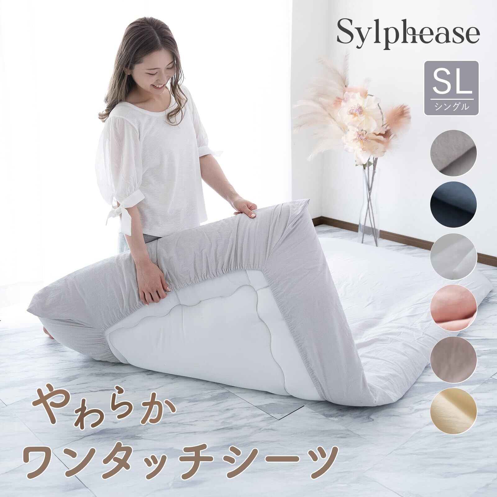 シルフィーズ ワンタッチシーツ シングル 100×210cm 水洗い ピーチスキン ソフトタッチ 柔らかい 全周ゴム仕様 洗える 敷き布団カバー 敷き布団 すっぽりフィットシーツ 秋冬春 ネイビー ブルー 青 無地