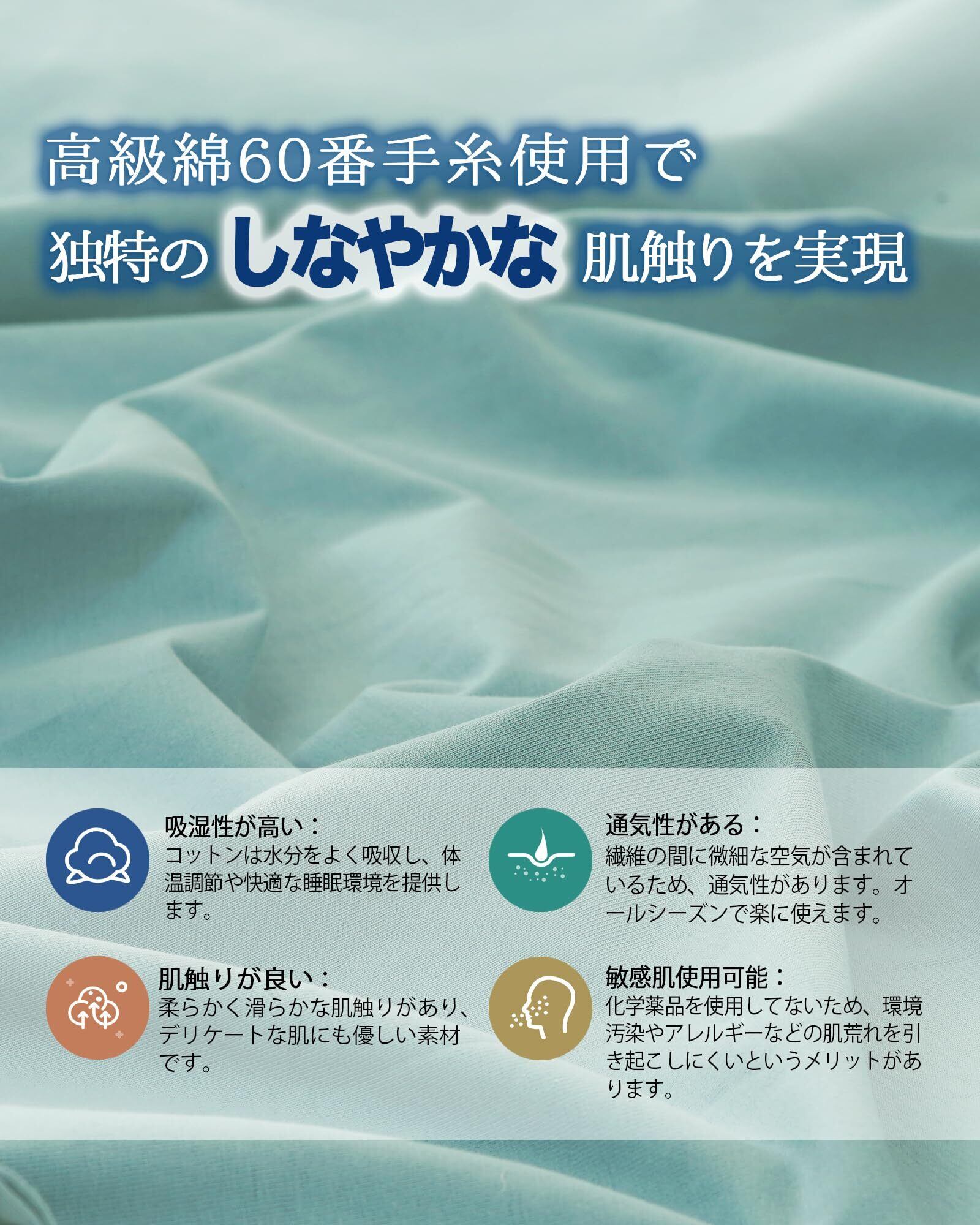 【天然綿·上質なやさしさと肌ざわり】枕カバーは顔に直接に触れるものなので、安心できる天然綿が肌に一番よいです。天然コットンの高い吸湿性と上質な触感を組み合わせで、しなやかな肌触りを提供します。天然の麻に匹敵する通気性は、驚くほど心地よいです。独自のしなやかな触感のコットン生地は柔らかくて、快適な睡眠環境を提供します。