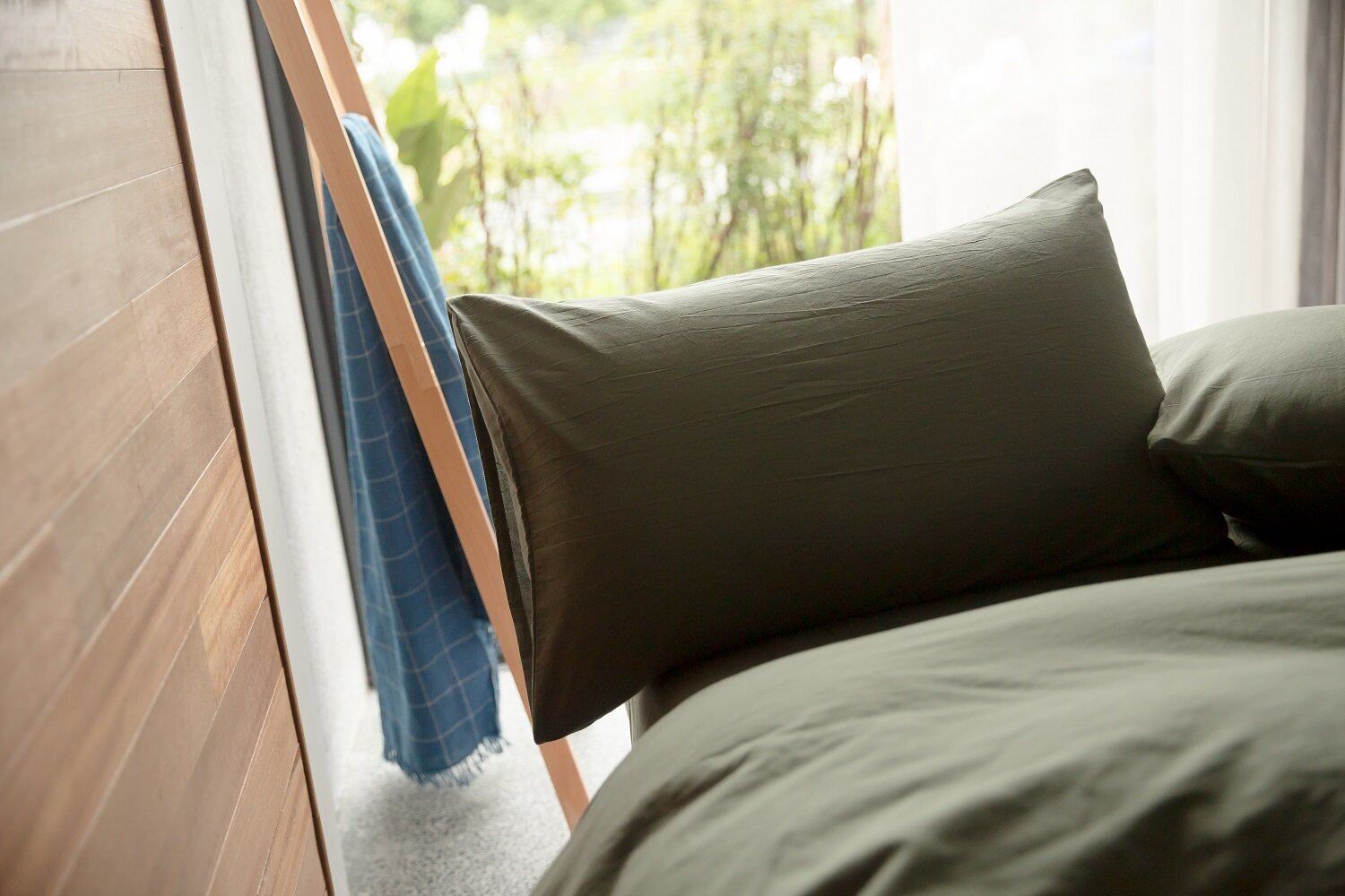 この枕カバーは、43×63cmのサイズにぴったり対応し、美しいオリーブグリーンが寝室に自然な安らぎをもたらします。100%オーガニックコットンを使用し、肌に優しい質感が快適な眠りを提供します。
