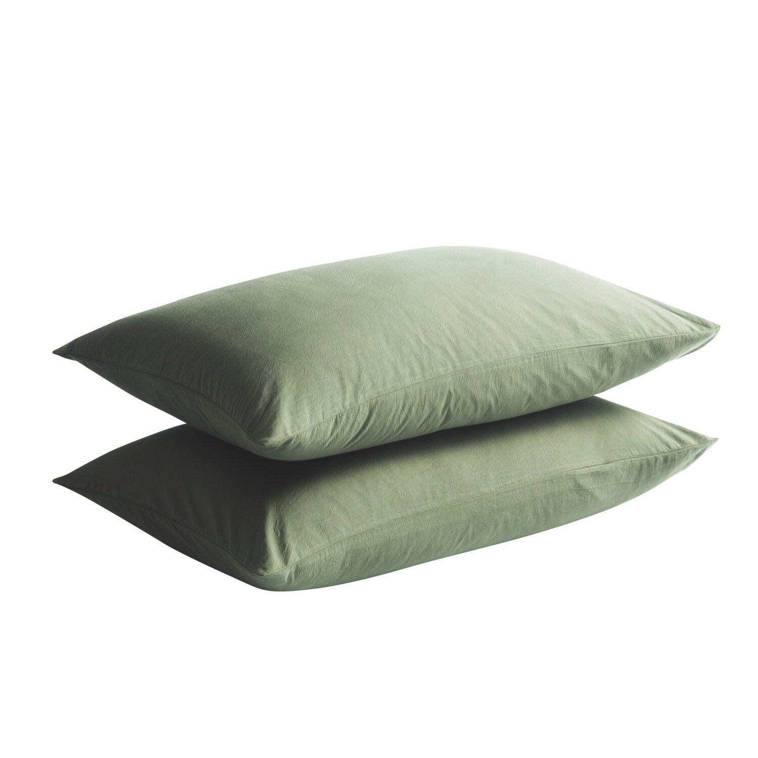 【枕カバー 2枚組】オーガニックコットン ピロケース 洗いざらしの綿100% 枕カバー2枚 43x63㎝ 防ダニ 抗菌防臭加工 封筒式 オリーブグリーン