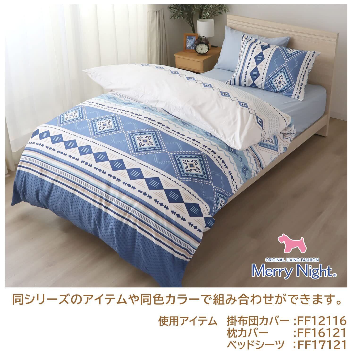 メリーナイト(Merry Night) 枕カバー 「キリム」 ブルー 約43×63cm ファスナー式 まくらが入れやすい 洗える 速乾 シワになりにくい FF16116-76